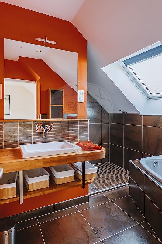 L'étage entièrement rénové comprend 2 chambres supplémentaires (avec la possibilité d'en créer facilement 2 autres), une salle de bain et des WC indépendants.
