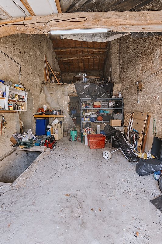 Une grande grange attenante, actuellement utilisée en garage, offre de nombreuses possibilités : stationnement, atelier, ou même aménagement en studio indépendant.