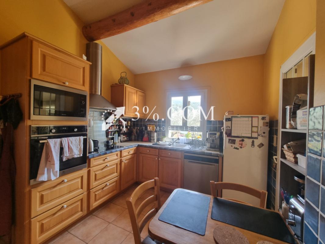 Josette FLAUS 3%.COM IMMOBILIER vous propose à 5 mn à l'Est de Nyons (2 km) dans un village avec commerces et école, une villa sans escalier avec 5 chambres sur un terrain clos de 1001 m2 avec piscine couverte, nage à contre courant et pool house.