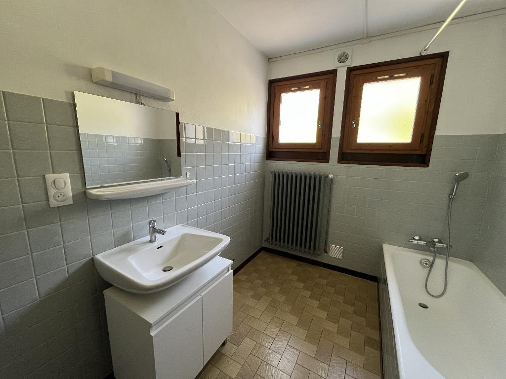 Le bien dispose également de trois chambres, dont deux avec placards et accès à un balcon, d'une salle de bains équipée d'une baignoire, ainsi que de WC séparés.