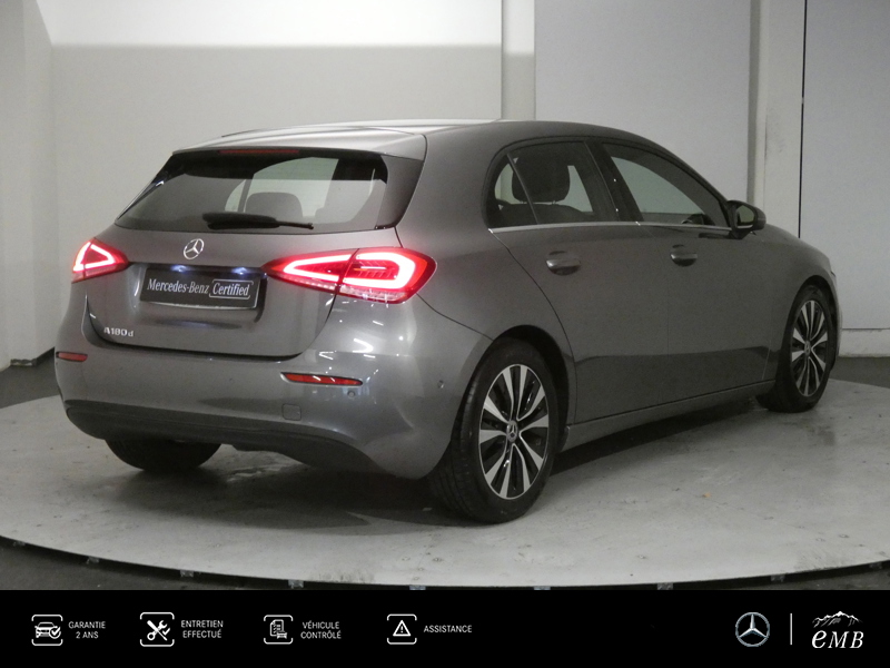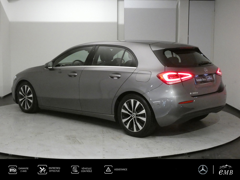 180 d Business Line, diesel, gris foncé, 17/03/2022, Projecteurs LED hautes performances, Module de communication (LTE) pour l'utilisation des services Mercedes me connect, Avertisseur de franchissement de ligne actif, Système de navigation par disque dur, Pré équipement pour Live Traffic Information, Rétroviseur intérieur et rétroviseur extérieur côté conducteur à commutation jour/nuit automatique, Tapis de sol en velours, Ciel de pavillon en tissu noir, Freinage d'urgence assisté actif, Réception radio numérique DAB, Style Line, Kit TIREFIT, Pack Advantage, DYNAMIC SELECT AMG, Pare-soleil avec miroir de courtoisie éclairé, MBUX système multimédia, Palettes au volant, Double porte-gobelets, Pack Style, Train de roulement AGILITY CONTROL avec système d amortissement sélectif et niveau surbaissé, Prééquipement pour radio numérique DAB, Filet au dos des sièges avant, Aide au Parking (APA) avec PARKTRONIC, Prééquipement pour système de navigation, Contrôle de la pression des pneus, Système d appel d urgence Mercedes-Benz, Rétroviseurs extérieurs rabattables électriquement, Sièges confort à l avant, Essuie-glaces avec détecteur de pluie, Climatisation automatique THERMATIC à 2 zones, Vide-poche sur la console centrale avec couvercle à enrouleur, Ecran média haute résolution 10,25, Caméra de recul, Jantes alliage 43,2 cm (17 ) à 5 doubles branches, Instrumentation digitale avec écran 10,25 WIDESCREEN, Prééquipement pour service de partage de clé, Pack Rétroviseurs, Direction paramétrique Sport, Pack Stationnement avec caméra de recul, Pack Visibilité, Protection piétons, Airbag genoux pour conducteur, Volant sport multifonction en cuir, Pack Confort sièges, Pavé tactile Touchpad, Banquette arrière rabattable 40/20/40, Régulateur de vitesse TEMPOMAT avec limiteur de vitesse, Réservoir AdBlue, Avertisseur de limitation de vitesse