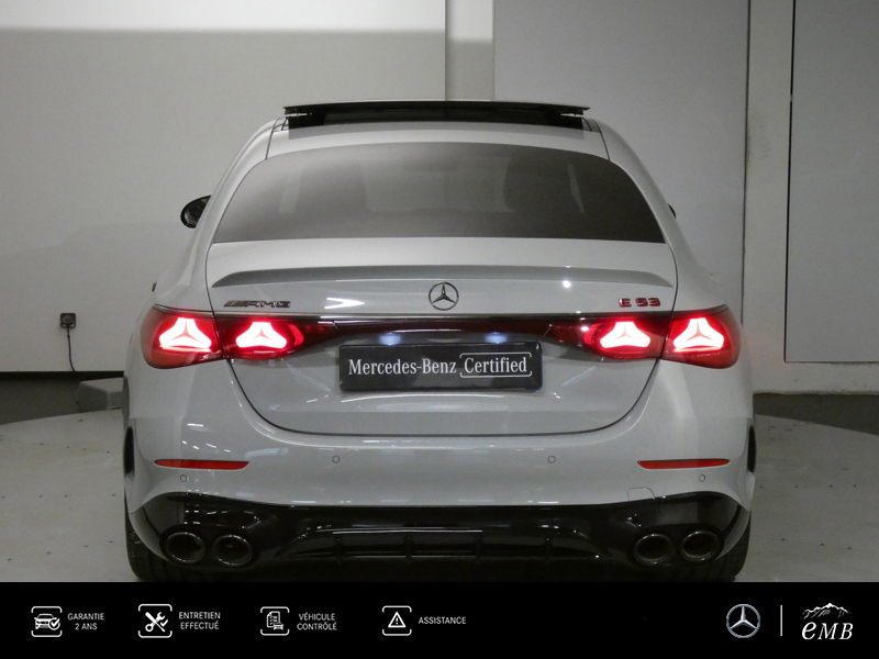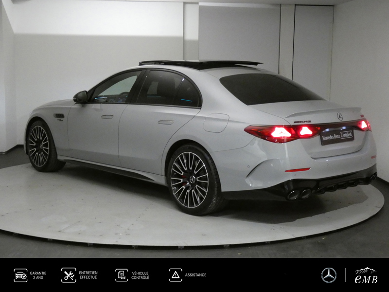 Berline AMG 53 HYBRID 4MATIC+, hybride essence électrique, gris, 30/08/2024, Pré équipement pour Live Traffic Information, Module de communication 5G pour l utilisation des services connectés, Services de charge et services à distance Plus, Sièges avant climatisés (chauffants et ventilés), Toit ouvrant panoramique, Affichage tête haute, Instrumentation digitale 3D pour le conducteur, Train de roulement avec amortissement adaptatif AMG RIDE CONTROL, Contrôle de la pression des pneus, Rétroviseurs extérieurs rabattables électriquement, Caméras panoramiques 360°, Prééquipement pour assistant de stationnement à distance, Détecteur de panneaux de signalisation, Ciel de pavillon en tissu noir, Système de navigation par disque dur, Système d appel d urgence Mercedes-Benz, Airbag central, Alarme antivol et anti-effraction avec protection antisoulèvement, Climatisation automatique THERMOTRONIC, Éclairage de proximité avec projection du logo, Assistant feux de route Plus, Prise de chargement, Système de récupération de la chaleur résiduelle du moteur, Pack USB Plus, Console centrale AMG finition carbone, Kit carrosserie AMG, Assistant Intérieur MBUX, Prééquipement pour radio numérique DAB, Buendler Mode 2-Kabel Haushalt, Sièges sport à l avant, Système de sonorisation 3D-Surround Burmester, Chargeur embarqué 11kW AC, Chargeur embarqué, Vitrage athermique foncé pour la lunette et les vitres latérales arrière, Vitrage athermique et isolants, Ecran passager OLED, Fonction de protection visuelle de l écran du passager, Ecran média tactile 11,9 WIDESCREEN, HANDS-FREE ACCESS, Eclairage d ambiance actif, Fermeture assistée du coffre, Protection volumétrique, Fermeture assistée des portes avant et arrière, KEYLESS-GO, Eclairage d'ambiance 64 couleurs, Service Connecté : Pré-équipement pour la clé de véhicule digitale, Système de recharge sans fil pour smartphone, Étiquette d identification avec numéro de châssis (VIN), Câble de charge pour prise domestique, 5 m, type 2, DIGITAL LIGHT, Airbag genoux pour conducteur, PRE-SAFE® Impulse latéral, Banquette arrière rabattable 40/20/40, Siège conducteur à réglages électriques avec fonction Mémoires, Assistant directionnel pour les manœuvres d'évitement, Assistance à la conduite active, Pack DRIVER AMG, Rétroviseur intérieur et rétroviseur extérieur côté conducteur à commutation jour/nuit automatique, Avertisseur de franchissement de ligne actif, Siège passager avant à réglages électriques avec fonction Mémoires, Aide au Parking (APA) avec PARKTRONIC, Pilote automatique de régulation de distance actif DISTRONIC, Caméra pour vidéo et selfie, Prééquipement pour service de partage de clé, Roues arrière directrices, Android Auto, Apple CarPlay, Intégration pour smartphone Android Auto et Apple CarPlay, Prééquipement pour les services à distance et de navigation, Prééquipement pour services de navigation, Protection de transport, Réception radio numérique DAB, Assistant de limitation de vitesse actif, Kit TIREFIT, Avertisseur sonore pour piétons, Assistant de changement de voie actif, Redémarrage automatique étendu dans les embouteillages, Adaptation de la vitesse basée sur un itinéraire, Volant Performance AMG en carbone / microfibre MICROCUT, Pack Confort KEYLESS-GO, Pack d assistance à la conduite, ENERGIZING AIR CONTROL, Pack Sport Black AMG, Pack DYNAMIC PLUS AMG, Pack Protection antivol URBAN GUARD Plus, Hyperscreen MBUX, DIGITAL LIGHT avec fonction Projection, Pack Sport Black AMG, Navigation MBUX Premium, Pack Stationnement avec fonctions de stationnement à distance, Pack ENERGIZING, Pack Premium Plus, Pack Premium Plus AMG Line, Intérieur Mercedes-AMG, Extérieur Mercedes-AMG, Jantes alliage AMG 51 cm (20 ) multibranches finition noir mat/rebord brillant, MBUX Réalité augmentée pour la navigation, Soutien lombaire à 4 réglages, Détecteur d occupation de siège pour sièges arrière, Tapis de sol AMG, Planche de bord et bas de glace en similicuir ARTICO façon Nappa noir, Déflecteur AMG, Protection piétons, Etriers de freins peints en rouge, Boutons AMG sur le volant