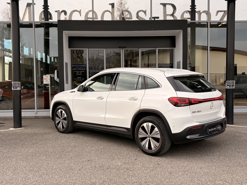 250+ Progressive Line, électrique, blanc, 17/11/2022, Contrôle de la pression des pneus, Rétroviseurs extérieurs rabattables électriquement, Avertisseur de limitation de vitesse, Ciel de pavillon en tissu noir, Réception radio numérique DAB, Pare-soleil avec miroir de courtoisie éclairé, MBUX système multimédia, Climatisation automatique THERMOTRONIC, Assistant de feux de route, Projecteurs LED hautes performances, Prise de chargement, Train de roulement AGILITY CONTROL avec système d amortissement sélectif et niveau surbaissé, Rampes de toit en aluminium poli, Vide-poche sur la console centrale avec couvercle à enrouleur, Prééquipement pour radio numérique DAB, Sièges confort à l avant, Chargeur embarqué 11kW AC, Chargeur embarqué, Système de sonorisation Advanced, Ecran média haute résolution 10,25, HANDS-FREE ACCESS, Sièges conducteur et passager avant chauffants, Eclairage d ambiance, KEYLESS-GO, Hayon EASY-PACK, Système de recharge sans fil pour smartphone, Instrumentation digitale avec écran 10,25 WIDESCREEN, Pavé tactile Touchpad, Régulateur de vitesse TEMPOMAT avec limiteur de vitesse, Baguette de seuil de coffre en chrome, Câble de charge pour prise domestique, 5 m, type 2, Kit TIREFIT, Avertisseur sonore pour piétons, DYNAMIC SELECT AMG, Inserts décoratifs finition spirale, Volant sport multifonction en cuir, Pack Confort KEYLESS-GO, Pack Stationnement avec caméra de recul, Pack Rétroviseurs, Pack Progressive Line, Pack Advanced Plus, Pack Premium, Jantes alliage 45,7 cm (18 ) à 5 branches noir/argent, Tapis de sol en velours, Soutien lombaire à 4 réglages, Prise 12 V dans le coffre, Pack Confort sièges, Protection piétons, Pack Visibilité, Palettes au volant, Accoudoir central arrière, Pré équipement pour Live Traffic Information, Système de navigation par disque dur, Module de communication (LTE) pour l'utilisation des services Mercedes me connect, Prééquipement pour système de navigation, Système d appel d urgence Mercedes-Benz, Essuie-glaces avec détecteur de pluie, Double porte-gobelets, Airbag genoux pour conducteur, Banquette arrière rabattable 40/20/40, Filet au dos des sièges avant, Avertisseur de sortie du véhicule à l arrêt, Freinage d'urgence assisté actif, Rétroviseur intérieur et rétroviseur extérieur côté conducteur à commutation jour/nuit automatique, Avertisseur de franchissement de ligne actif, Aide au Parking (APA) avec PARKTRONIC, Avertisseur d angle mort, Caméra de recul, Prééquipement pour service de partage de clé, Prééquipement pour les services à distance et de navigation, Standard Europe, Pack Confort Coffre, Étiquette d identification avec numéro de châssis (VIN)