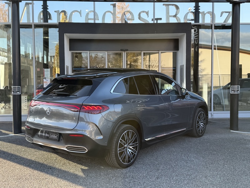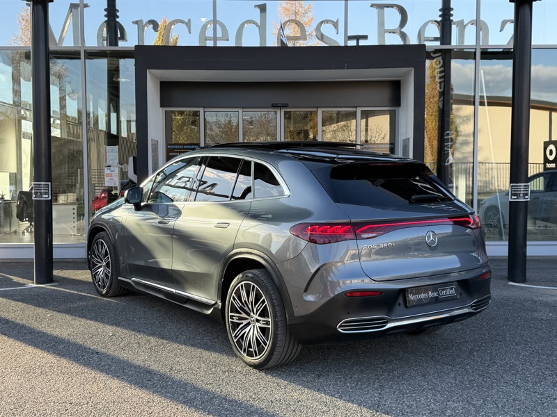 SUV 350+ AMG Line, électrique, gris, 20/08/2024, Système d appel d urgence Mercedes-Benz, Pilote automatique de régulation de distance actif DISTRONIC, Contrôle de la pression des pneus, Vitrage teinté et insonorisant en verre feuilleté réfléchissant les infrarouges, HANDS-FREE ACCESS, Prééquipement pour système de navigation, Aide au Parking (APA) avec PARKTRONIC, Sièges conducteur et passager avant chauffants, Détecteur de panneaux de signalisation, Pack d éclairage intérieur, Eclairage d ambiance actif, Câble de charge pour prise domestique, 5 m, type 2, Prise de chargement, Siège conducteur à réglages électriques, Siège passager avant à réglages électriques avec fonction Mémoires, Avertisseur de franchissement de ligne actif, Système de navigation par disque dur, Protection volumétrique, Pré équipement pour Live Traffic Information, AIR BODY CONTROL Suspension AIRMATIC, Ciel de pavillon en tissu noir, KEYLESS-GO, MBUX Réalité augmentée pour la navigation, Pack Protection antivol URBAN GUARD Plus, Rétroviseur intérieur à commutation jour/nuit automatique, Hayon EASY-PACK, Eclairage d'ambiance 64 couleurs, Inserts décoratifs en tilleul linestructure anthracite à pores ouverts, Kit carrosserie AMG, Soutien lombaire à 4 réglages, Console centrale en bois anthracite à fines lignes, Prééquipement pour clé de véhicule digitale pour smartphone, Toit ouvrant panoramique, Système de recharge sans fil pour smartphone, Système multimédia MBUX, Système de sonorisation 3D-Surround Burmester, Détecteur d occupation des sièges arrières, Tapis de sol AMG, Réception radio numérique DAB, Baguettes de seuil éclairées avec monogramme « Mercedes-Benz », Kit TIREFIT, Avertisseur sonore pour piétons, DYNAMIC SELECT AMG, Module de communication (5G Ramses) pour l'utilisation des services Mercedes me connect, Assistance à la conduite active, Prééquipement pour les services à distance et de navigation, Prééquipement pour services de navigation, Grille de calandre diamant, Pack Confort acoustique, Assistant de limitation de vitesse actif, Pack Confort KEYLESS-GO, Hyperscreen MBUX, Protection Transport, Porte-gobelets, DIGITAL LIGHT avec fonction Projection, Assistant directionnel pour les manœuvres d'évitement, Pack d assistance à la conduite, Siège conducteur à réglages électriques avec fonction Mémoires, Alarme antivol et anti-effraction avec protection antisoulèvement, Intégration pour smartphone Android Auto et Apple CarPlay, Palettes de changement de rapport au volant DIRECT SELECT, Navigation MBUX Premium, Intérieur AMG Line, DIGITAL LIGHT, Trappe de recharge électrique, Prééquipement pour radio numérique DAB, Chargeur embarqué, AMG Line Premium Plus, Extérieur AMG Line, Banquette arrière rabattable 40/20/40, Scanner à empreinte digitale, Affichage tête haute, Vitrage athermique foncé pour la lunette et les vitres latérales arrière, Buendler Mode 2-Kabel Haushalt, Airbag central, Cache-bagage EASY-PACK, Chargeur embarqué AC (22 kW), Pack USB Plus, Airbags rideaux, PRE-SAFE® Impulse latéral, Airbag genoux pour conducteur, Apple CarPlay, Pack Premium Plus, Système PRE-SAFE, Pack Stationnement avec caméras panoramiques 360°, Pack Rétroviseurs, Suspension avec système d'amortissement adaptatif, Prééquipement pour service de partage de clé, Roues arrière directrices avec adaptation de l angle de braquage de 10°, Pneus avec réduction de bruit, Redémarrage automatique étendu dans les embouteillages, Assistant de changement de voie actif, Adaptation de la vitesse basée sur un itinéraire, Climatisation automatique THERMOTRONIC, Android Auto, Pompe à chaleur, Ecran passager OLED, Éclairage de proximité avec projection du logo, Rétroviseurs extérieurs rabattables électriquement, Caméras panoramiques 360°, Eclairage de proximité avec projection animée du motif Mercedes-Benz, x2, Sièges sport à l avant, Étiquette d identification avec numéro de châssis (VIN), Volant sport multifonction en cuir Nappa, Assistant feux de route Plus