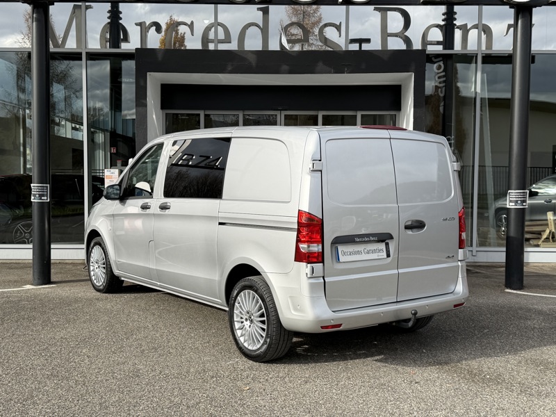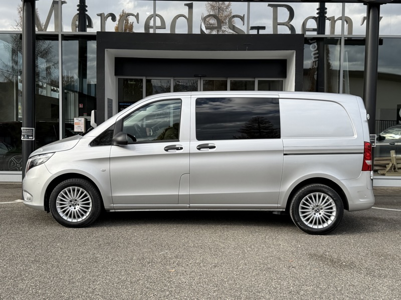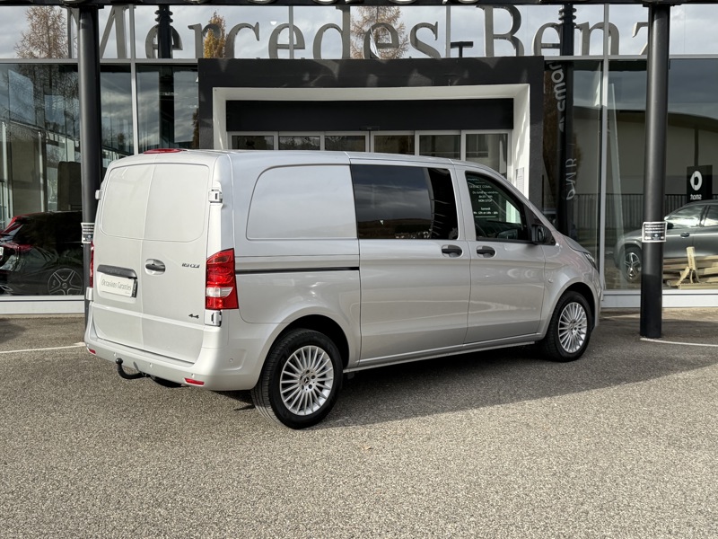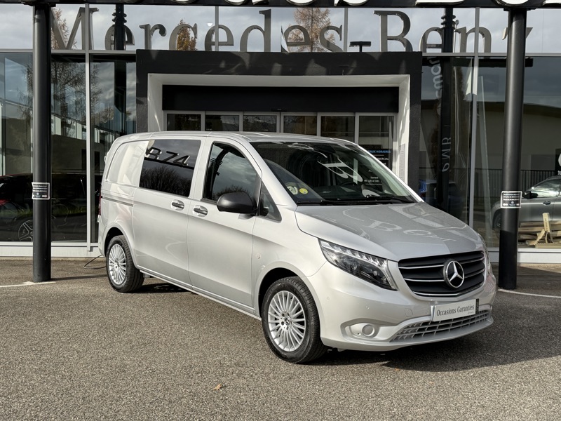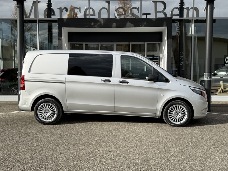 119 CDI 4x4 Mixto Compact, diesel, argent, 01/12/2022, Poignées maintien pour accès conduct. et passager, Porte arrière deux battants 180 degres sans fenetre, Climatisation automatique THERMOTRONIC, Ciel de pavillon, Autoradio numérique (DAB), Fonction Stop/Start ECO, Vito/Classe V série C 447, Prises 12 V pour les rangées de sièges arrière, côtés gauche et droit, Prise 12 V dans le compartiment de chargement, Conduit ?d air chaud vers compartiment passagers, TEMPOMAT, Zone climatique 2 (tempéré), Dispositif d?attelage à boule fixe, Plancher à revêtement TPO dans le compartiment passagers, Année modèle 3, Homologation camion, Pneumatiques M+S, Banquette 3 places confort pour la 1re rangée, siège extérieur rabattable, Données du véhicule codées VIN avec chiffre de contrôle, Simili cuir noir, Allumage automatique des phares, Chauffage auxiliaire électrique, Combi, Batterie tampon pour démarrage, Avertisseur oubli ceinture sécurité siège passager, Siège conducteur chauffant, Inserts décoratifs en tilleul noir à pores ouverts, Norme antipollution Euro 6d N1 cl. III/N2, Génération modèle 1, Console centrale avec casier de rangement, Vitres teintées AR et côtés, noir, Peinture métallisée, Poignée de maintien au niveau des accès, Sécurité enfant sur les portes du compartiment passagers, Eclairage intérieur et éclairage de proximité du fourgon, Châssis standard, Charge remorquée 2 500 kg, Mercedes-Benz MobiloVan avec carnet de maintenance en ligne et garantie anticorrosion, Soutien lombaire pour le siège passager avant, Mixto, Soutien lombaire pour le siège conducteur, PARKTRONIC, Jantes alliage 7 J x 17 à 20 branches, Assistant de feux de route PLUS, Audio 40, Habillage intérieur de qualité supérieure, Intelligent Light System à LED, Habillage intérieur du compartiment de chargement, baies dans le haut, Combiné d instruments avec affichage matriciel à pixels, Aide au démarrage en côte, Grille de calandre chromée, Pare-soleil avec miroir de courtoisie éclairé, Pare-chocs et pièces rapportées dans le ton carrosserie, Boîte automatique 9G-TRONIC, Assistance en cas de panne, Système d appel d urgence Mercedes-Benz, Haut-parleurs à 2 voies à l? avant et à l? arrière, Véhicule avec direction à gauche, Système de rails pour l? arrimage du chargement, Batterie AGM 12 V 95 Ah, Détecteur de pluie, Système d?arrêt actif pour la porte coulissante, Points d arrimage dans le cadre de toit, Marque de pneu Continental (10), Porte coulissante à gauche, Rétroviseur intérieur, Eclairage des seuils, Rétroviseurs extérieurs rabattables électriquement, Boîte à gants verrouillable, Vitres teintées, Rétroviseurs extérieurs chauffants à réglage élec., ATTENTION ASSIST, Moteur OM 654 DE 20 LA 140 kW (190 ch), Module de pavillon confort, Eclairage du plancher à l?avant, Pneus 225/55 R17, Transmission intégrale permanente, Intervalle de maintenance de 40 000 km, Airbag passager avant, Fonction HOLD, Pack Chrome Intérieur, Certificat CE de conformité, Filet de rangement sur le dossier du siège passager avant, Filet de rangement sur le dossier du siège conducteur, Pack CONFORT Mixto, Module de com. (LTE) pour services numériques, Vitre avt droite fixe ds paroi lat./porte couliss., Vitre avt gauche fixe ds paroi lat./porte couliss., Poignée de maintien à l?arrière, Réservoir de carburant grand format, Eclairage intérieur à l?arrière, Siège passager avant confort, Siège conducteur confort, Alternateur 14 V / 250 A, Affichage de la pression des pneumatiques, Basic, Plaques/imprimés en français, Feux de stop adaptatifs, Restylage, Témoin de bas niveau de liquide de lave-glace, Gestion de l alternateur, Pack acoustique, Pack BlueEFFICIENCY, Ouverture et fermeture confort par télécommande infrarouge, Volant réglable en hauteur et en inclinaison, Volant multifonctions avec ordinateur de bord, Volant cuir, Caméra de recul, Double porte-gobelet central avant, Accoudoirs pour les sièges du compartiment passagers, Pack de modifications 2 - II, MB Connect - Informations routières en temps réel