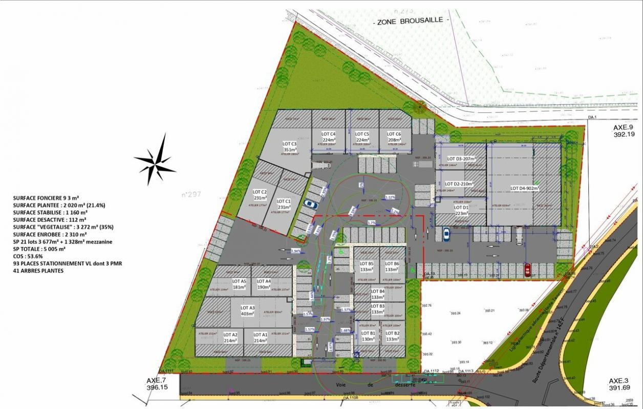 Programme neuf livraison prévue en 2026/2027 différents lots à partir de 207 m² dont 61 m² de mezzanine avec garde cops et escalier en option, bâtiment entièrement isolé avec des hauteurs sous toiture de 6.00 m et 3.00 m sous la mezzanine, sol béton quartz charge 1T/m², charge de la mezzanine 250 Kg/m², livré brut fluides en attente compris compteur EDF bleu, porte sectionnelle de 3.00 x 3.00 m (motorisation possible), fourreau en attente pour les recharges de véhicules électriques, terrain bitumé, site clos avec portail motorisé avec commande ou digicode et sur horloge, nombreux stationnements, implantation dans une zone artisanale proches des axes principaux et à 5 Kms de l'autoroute.
