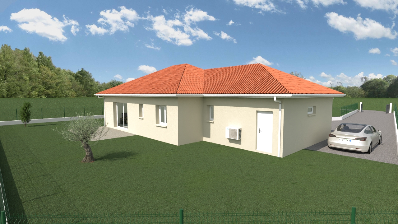 Design Batiment vous propose ce projet de construction d'une maison individuelle de 95 m2 habitables proposant une grande pièce de vie de 45 m2, 3 chambres, une Buanderie + un garage de 20m2. Sur un magnifique terrain de 707 m2, situé dans un environnement très calme et très agréable.