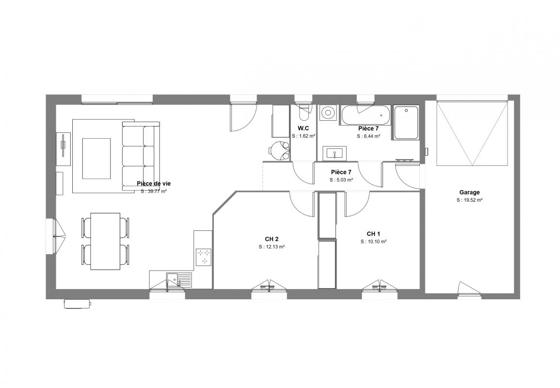 Design Bâtiment, vous propose ce projet de construction avec un permis de construire accepté et déjà purger (démarrage construction rapide) pour une maison individuelle de 75m2 habitable proposant 2 chambres + un garage de 19 m2, sur un magnifique terrain de 424m2 viabilisé.