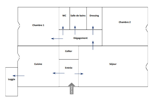 Appartement traversant, avec loggia, cellier & dressing