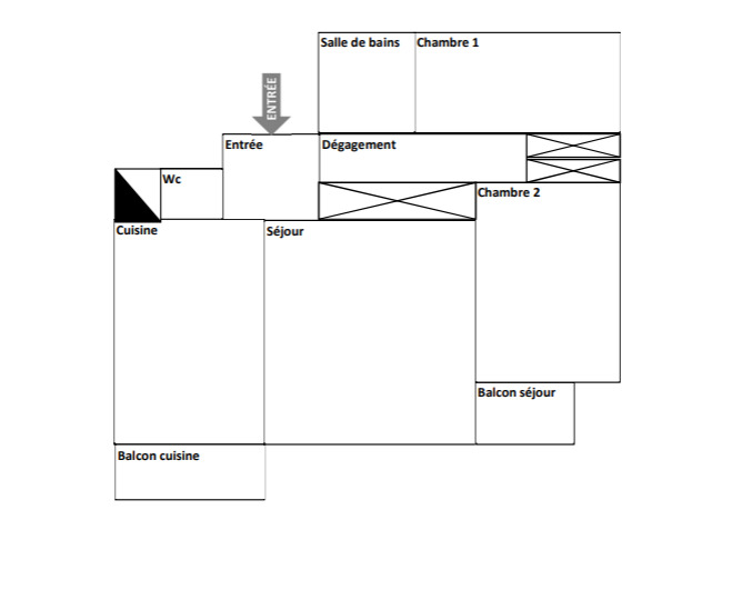 Appartement avec 2 balcons, salles bains & WC séparé