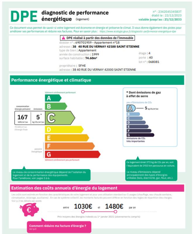 Charges mensuelles (provision ascenseur, entretien des communs, petite robinetterie, VMC) : 107,76 €