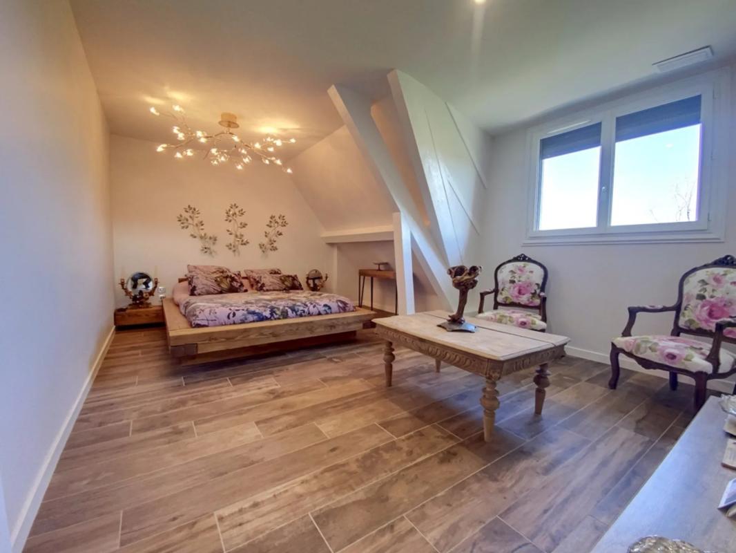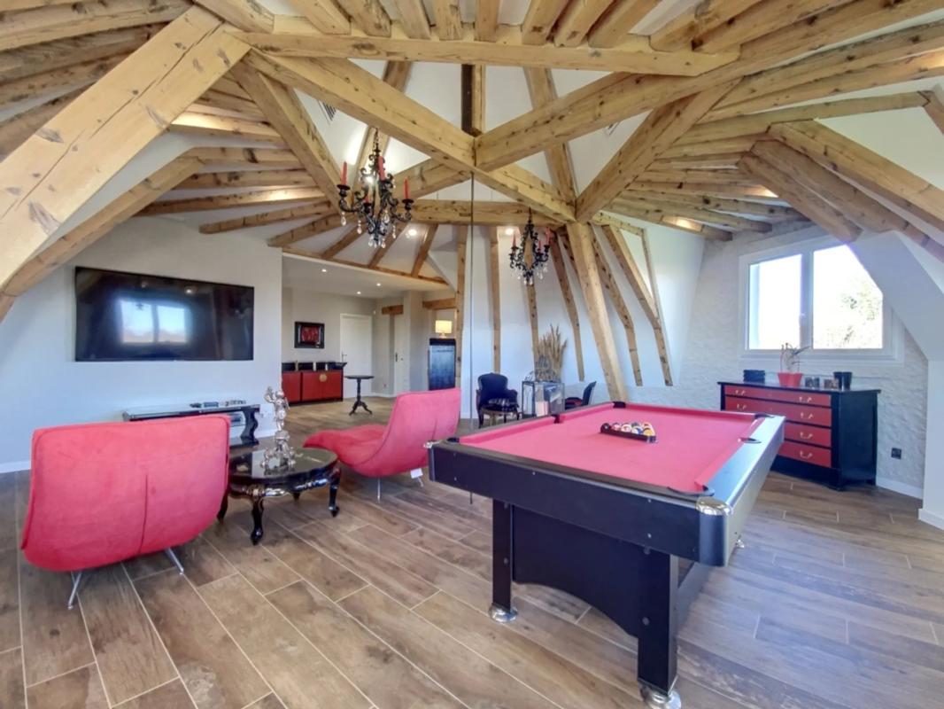 La villa s'étend sur deux niveaux, comprenant 8 pièces dont 5 chambres spacieuses. Elle dispose de 2 salles de bains modernes, d'une cuisine séparée et équipée, ainsi que de nombreux espaces de rangement, dont un dressing. Une pompe à chaleur assure une performance énergétique optimale. Le tout est situé sur un terrain de 4 642 m², agrémenté d'un vaste jardin de 6 700 m² et d'une piscine.
