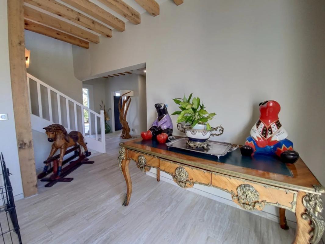 Le toit en chaume, récemment refait, confère à cette demeure un cachet indéniable tout en assurant une excellente isolation. Le séjour en rotonde baigne de lumière naturelle, créant un espace de vie convivial et chaleureux. Profitez d'une cave à vin vitrée, élégamment aménagée et équipée d'un système de climatisation pour préserver vos meilleurs crus. Un bureau privé est également à votre disposition, offrant un cadre propice à la concentration et à l'inspiration.