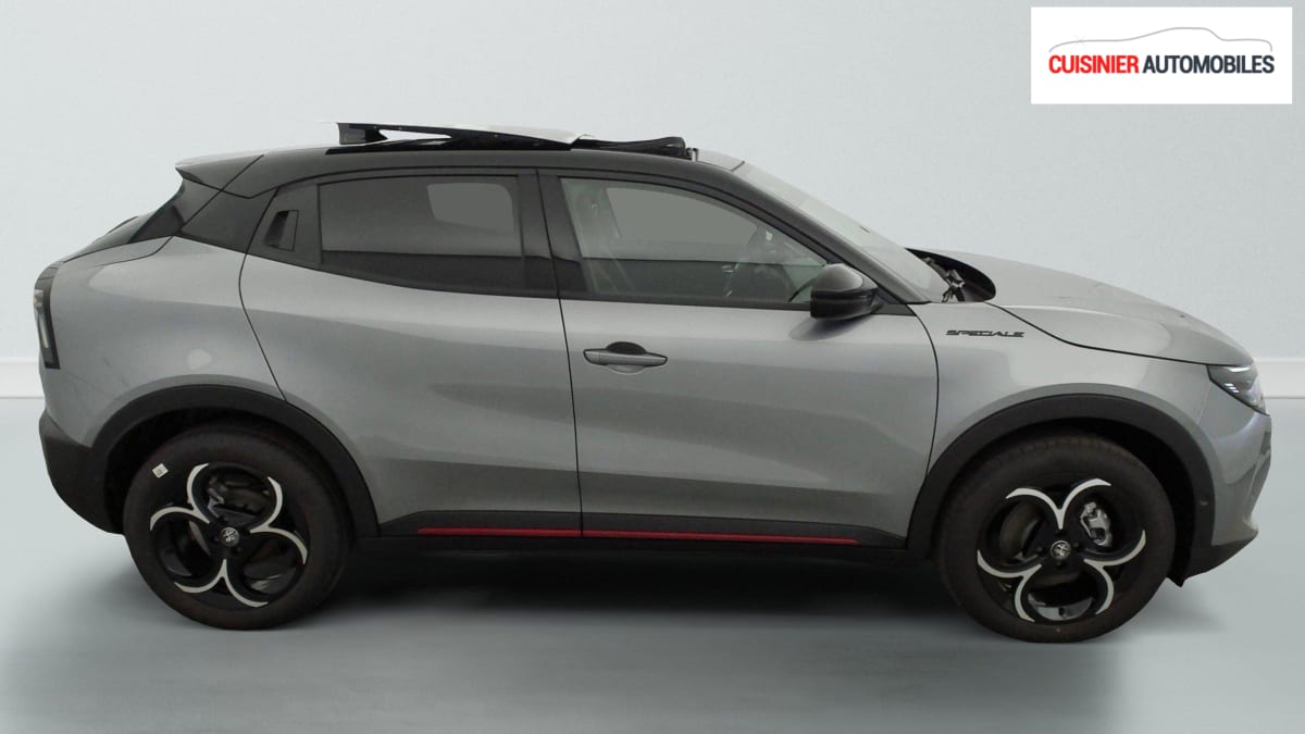 1.2 Ibrida 145 ch eDCT6 Speciale, hybride, gris, 15/09/2025, Prolongation de la garantie constructeur de 24 à 36 Mois : option incluse (valeur : 550 Eur TTC), Accoudoir AV, Banquette AR rabattable 60/40, Allumage automatique des feux et des essuie-glaces, Direction assistée, Apple CarPlay / Android Auto sans fil, Détection de fatigue du conducteur, Système de démarrage sans clé, Prise USB AV type A + C (Charge et données), Radio DAB, Assistant de maintien dans la voie, Alerte de rappel de présence sur les sièges AR, Frein de parking électrique, Feux AR Full-Led, Assistance de conduite semi-autonome autoroute et trafic dense, Système de navigation, réplicable sur le Combiné d'instrument digital, Système d'ouverture sans clé, Système audio à 6 HP, Peinture métallisée Bleu Navigli Toit Noir : option incluse (valeur : 1 200 Eur TTC), Jantes alliage 18" Fori avec pneumatiques été 215/55 R18 99V, Vitres AV/AR électriques, Combiné d'instruments digital 10, 25" Cannochiale, Sélecteur de mode de conduite DNA (3 modes), 6 airbags (Frontaux, latéreux et rideaux), Climatisation automatique mono-zone, Plancher de coffre ajustable, Scudetto Progresso, Volant en cuir multifonction, Pédalier et seuils de porte en aluminium, Palettes au volant, Eclairage d'ambiance (Cannocchiale, aérateurs latéraux et tunnel centrale), Capteur de pression des pneumatiques TPMS, Hayon mains libres, Freinage d'urgence autonome urbain (détection des usagers vulnérables), Prise USB AR type 1 x C (Charge), Régulateur de vitesse adaptatif intelligent avec lecture des panneaux, Pack Sport Speciale Sièges baquets SABELT (réglages électriques et chauffant coté conducteur), Volant sport en cuir et Alcantara, Insert Alcantara (planche de bord, tunnel central, contre-portes en soft-touch) : Insert Alcantara (planche de bord, tunnel central, contre porte) Sièges baquets SABELT (réglages électriques et chauffant coté conducteur) Volant Sport en cuir et Alcantara : option incluse (valeur : 2 500 Eur TTC), Pack Techno Speciale Projecteurs adaptatifs Full-Led Matrix, Radars de stationnement 360° (AV, AR et latéraux), Chargeur induction pour smartphone, Rétroviseurs extérieurs rabattables électriquement avec détecteur d'angles, Rétroviseurs intérieur électrochrome : Rétroviseur intérieur électro-chromatique Chargeur de téléphone à induction, Projecteurs adaptatifs Full-Led Matrix Rétroviseurs extérieurs rabattables électriquement avec détecteur d'angles morts Radars de stationnement 360° (AV, AR et latéraux) : option incluse (valeur : 1 500 Eur TTC), ABS, ESP, TCS, Boîte automatique 6 rapports, Verrouillage centralisé, Vitres AR surteintées, Toit ouvrant électrique : option incluse (valeur : 1 400 Eur TTC)
