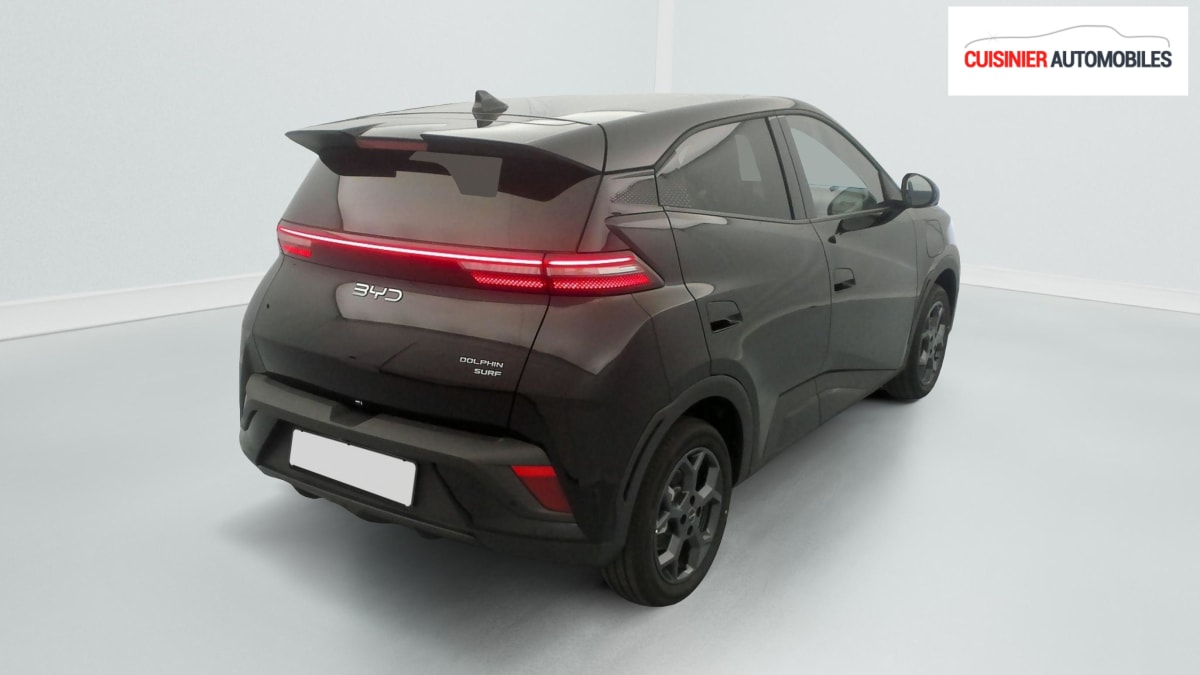 SURF 43.2 kWh 156 ch Comfort, électrique, noir, 26/06/2025, Temps de recharge (avec chargeur rapide) de 10% à 80% seulement en 30 minutes, de 30% à 80% en 22 minutes : option incluse (valeur : 0 Eur TTC), Peinture métallisée : option incluse (valeur : 650 Eur TTC), Navigation, ISOFIX and i-Size, front passenger and outer rear seats, Auto Hold, Keyless entry & keyless start, Android Auto et Apple CarPlay, Ecran tactile rotatif électrique 10, 1", Chargeur embarqué 11 kW, Sortie électrique 12 V, Jantes en alliage 16", 2 x clé intelligente, Caméra de vue à 360°, Tableau de bord 7", Régulateur de vitesse adaptatif (ACC) et régulateur de vitesse intelligent (ICC), Système anti bloquage (ABS), Système audio, 4 HP, Freinage d'urgence automatique (AEB), Automat à fonction continue, Verrouillage centralisé, Service Cloud - Appli BYD, Arrêt confort (CST), DAB+ et FM, Siège conducteur, réglable électriquement, 6 directions, Siège conducteur chauffant, Vitre côté conducteur, à impulsion et avec fonction anti-pincement, Airbag conducteur, Modes du conduite: Eco, Normal, Sport, Snow, Frein de stationnement électrique (EPB), Distribution électronique de la force de freinage (EBD), Système de stabilisation éléctronique (ESP), Appel d'urgence, Aide d'urgence au maintien dans la voie (ELKA), Eclairages de sol par les rétroviseurs extérieurs, Rétroviseurs extérieurs, réglables électriquement, rabattables électriquement, chauffants, Follow me home, Avertissement prédictif de collision (PCW), Accoudoir central AV, 2 porte-gobelets, Siège passager AV, réglable électriquement, 4 directions, Siège passager AV, chauffant, Airbag passager AV, contacteur de désactivation, Pare-soleil AV avec éclairage du miroir, Airbags latéraux AV, Ports USB AV, 1 x 18 W type C, 1 x 60 W type C, Pare-brise AV, essuie-glaces à détection de pluie, Gestion de la fatigue du conducteur (DFM) indirecte, Contrôle intelligent des feux de route (IHBC), Freinage intelligent (IPB), Contrôle de limite de vitesse intelligent (ISLC), Commande vocale intelligente - "Hi, BYD", Sellerie, similicuir vegan (Noir& Gris) : option incluse (valeur : 0 Eur TTC), Feux de jour à LED, Assistance au franchissement de ligne (LDA), Lampes de lecture AV à LED, Phares à LED, allumage/extinction automatique, Feux AR à LED, Climatisation manuelle, Sécurité enfant mécanique, Volant multifonction, cuir vegan, Connectivité 4G à bord, Direction assistée, Ceintures de sécurité AV pré-tendues et limitatrices d'effort, Feux antibrouillard AR, Radars de stationnement AR, Vitres AR et lunette AR, verre teinté, Airbags rideaux latéraux, Chargement sans fil pour smartphone, 15 W, Sièges AR rabattables divisés, 50:50, Système de contrôle de traction (TCS), Reconnaissance des panneaux de signalisation (TSR), Système de surveillance de la pression des pneus (TPMS)