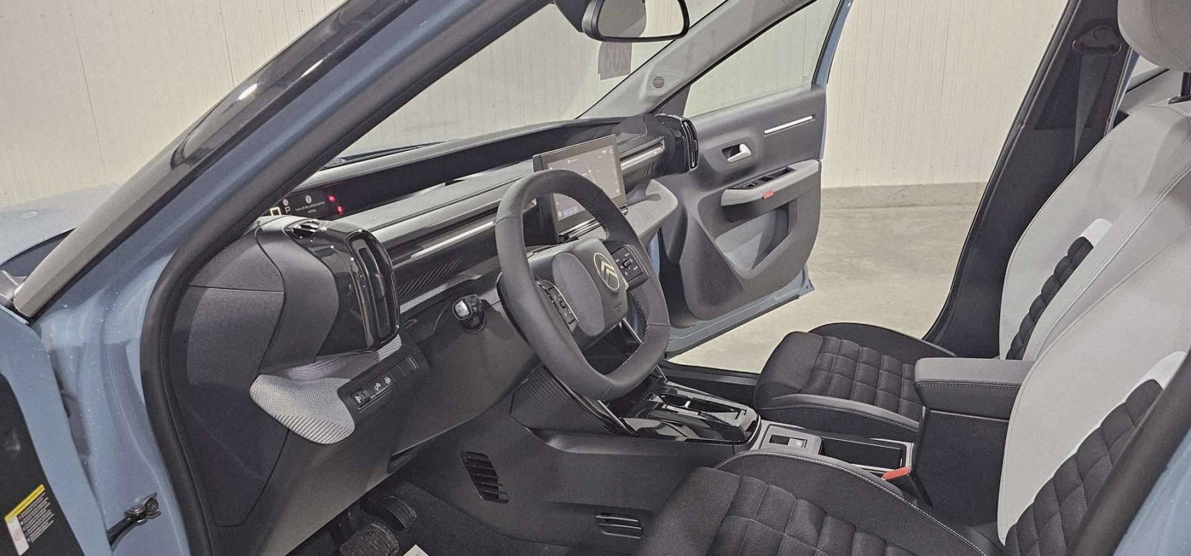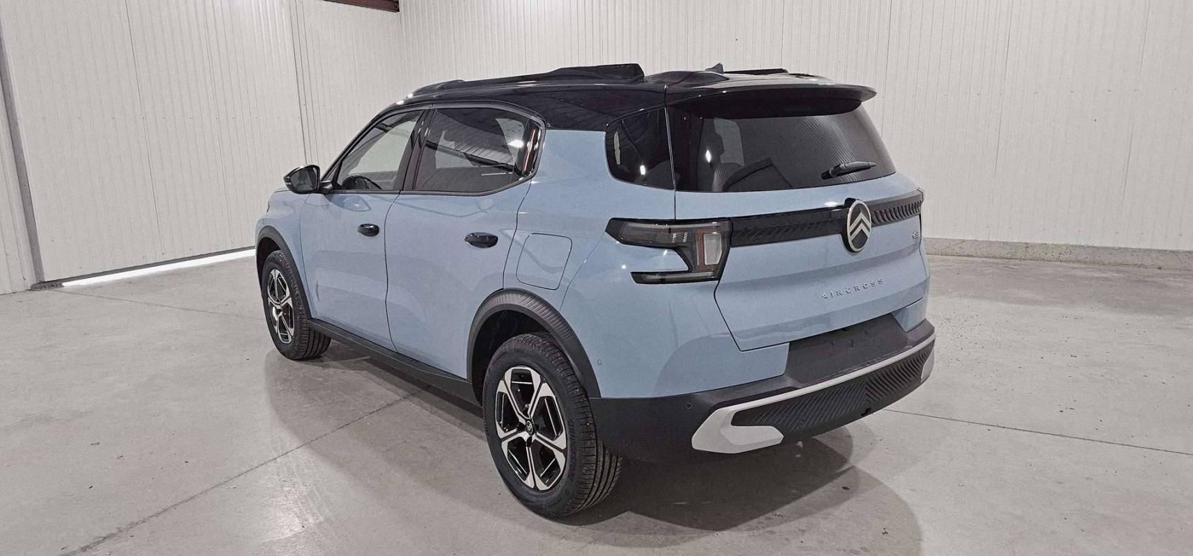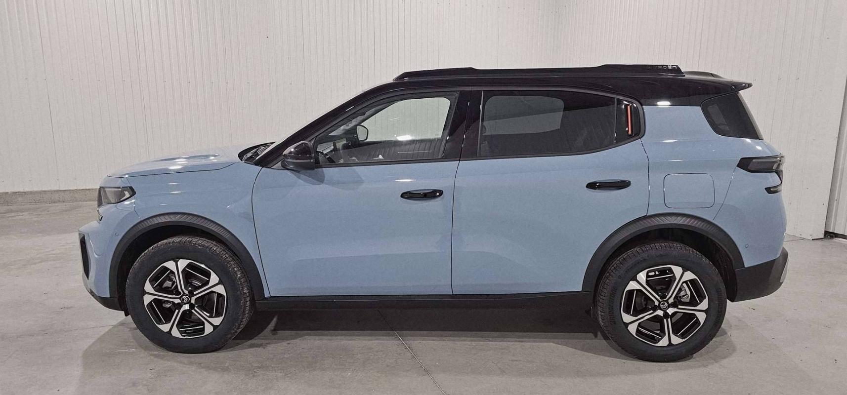 Hybride 145 e-DCS6 Max, hybride essence électrique, bleu, 09/09/2025, première main, 1 Prise USB type-C (charge rapide 3A) sur la console centrale, 1 Prise USB type-C (charge standard et data) sur la planche de bord, 2 Prises USB type-C (charge rapide 3A) en rang 2, 6 Airbags (frontaux, lateraux AV et rideaux), ABS, ESP, TCS, AFU, REF, Aide au demarrage en pente, Aide au stationnement AR, Aide au stationnement AV, Allumage automatique des feux de croisement, Avertisseur sonore monoton, Banquette AR avec dossier fractionnable 2/3 et 1/3, Barres de toit Noir Brillant, Boite automatique 6 rapports, Camera de recul, Centre de roue noir avec logo, Citroen Head up Display (affichage tete haute couleur) - TFT, Climatisation automatique, Condamnation centralisee avec PLIP, Console centrale haute avec accoudoir et rangement ferme, Coques de retroviseurs exterieurs Noir Brillant, Decors exterieurs Noir Brillant, Detection de sous-gonflage, Direction assistee, Eclairage d'accompagnement et d'accueil, Eclairage d'ambiance monochromatique, Ecran central 10, 25 " tactile: Apple CarPlay et Android Auto sans fil, Elargisseurs d'ailes Noir Mat, Essuie-vitre AV automatique (capteur de pluie), Feux AR 3D a LED, Feux diurnes a LED, Fixations ISOFIX sur les deux places laterales, Frein de stationnement electrique, Garnissage Maille Hello Noire /Toile enduite Gris clair, Jantes alliage 17" ARAGONITE Diamantees, Leve-vitres AR electriques (descente sequentielle), Leve-vitres AV electriques (descente sequentielle), Navigation 3D sur ecran central 10, 25" tactile, Ordinateur de bord, Pack Safety, Pare-brise acoustique, Plafonnier a LED, Plancher de coffre escamotable, Poches aumonieres au dos des sieges AV, Poignees de maintien au rang 2, Poignees de portes exterieures Noir Brillant, Prise 12 V a l'AR de console centrale, Projecteurs LED, Recharge sans fil pour smartphone (puissance 15W), Repetiteur de clignotant dans le retroviseur a LED, Retroviseur interieur electrochrome, Retroviseurs exterieurs electriques, Retroviseurs exterieurs rabattables electriquement et degivrants, Sabots AV et AR, Siege conducteur reglable en hauteur, Sieges Advanced Comfort, Station d'accueil Smartphone, Suspension Citroen Advanced Comfort, Systeme de surveillance d'angle mort, Temoin de non-bouclage des ceintures de securite conducteur et passagers, Verrouillage centralise, Vitres et lunette AR surteintees, Vitres laterales teintees, Volant Gaine avec decor chrome, Volant reglable en hauteur et en profondeur, VOEU, Predisposition pour roue de secours, Pack Hiver Pare-brise chauffant, Volant chauffant, Sièges avant chauffants (similicuir/tissu), Phares antibrouillard avant, bleu monte carlo toit noir