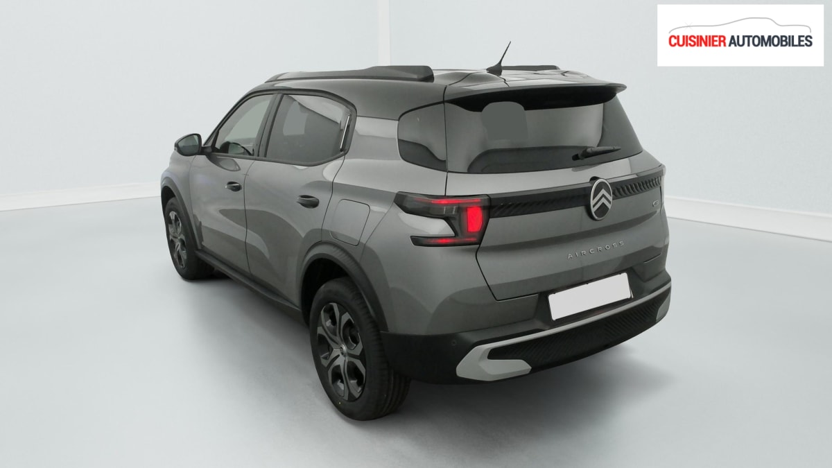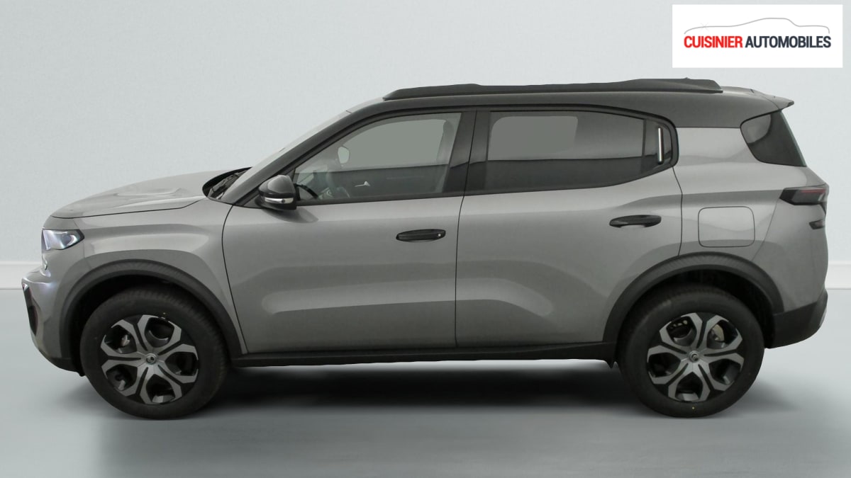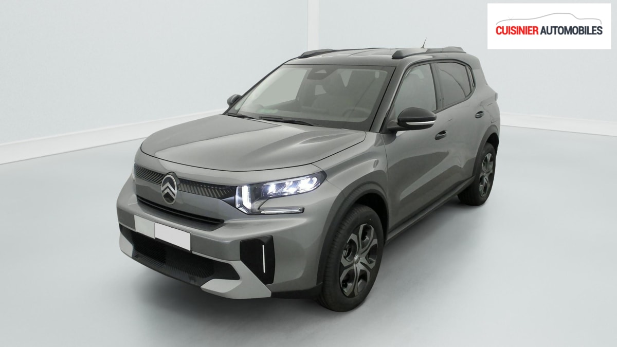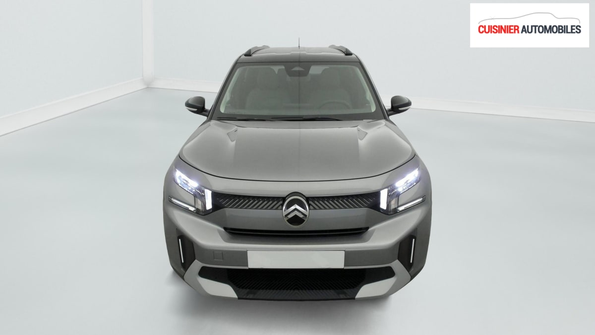 Nouveau Hybride 145 e-DCS6 Plus, hybride, gris, 16/12/2025, Teinte de caisse métallisée : option incluse (valeur : 700 Eur TTC), Toit bi-ton : option incluse (valeur : 300 Eur TTC), Détection de sous-gonflage, Caméra de recul, Feux diurnes à LED, Feux AR 3D à LED, Aide au stationnement AR, Commutation automatique des feux de route, Allumage automatique des feux de croisement, Barres de toit Noir Brillant, Coques de rétroviseurs extérieurs Noir Brillant, Pare-brise acoustique, Témoin de non-bouclage des ceintures de sécurité conducteur et passagers, Vitres et lunette AR surteintées, Pack Safety : Alerte attention conducteur Alerte active de Franchissement Involontaire de ligne Reconnaissance des panneaux de vitesse Régulateur - limiteur de vitesse Active Safety Brake (freinage automatique d'urgence), Direction assistée, Volant réglable en hauteur et en profondeur, Projecteurs LED, Plancher de coffre escamotable, Prise 12 V à l'AR de console centrale, Poignées de portes extérieures Noir Brillant, Elargisseurs d'ailes Noir Mat, Décors extérieurs Noir Brillant, Suspension Citroën Advanced Comfort, Fixations ISOFIX sur les deux places latérales, Climatisation automatique, Condamnation centralisée avec PLIP, Poches aumônières au dos des sièges AV, Lève-vitres AV électriques (descente séquentielle), Rétroviseurs extérieurs rabattables électriquement et dégivrants, Lève-vitres AR électriques (descente séquentielle), Boîtier télématique: Appel d'urgence, Essuie-vitre AV automatique (capteur de pluie), Rétroviseurs extérieurs électriques, Citroën Head up Display (affichage tête haute) - LCD, Configuration 7 places : - Banquette 2 places en rang 3 avec dossiers rabattables 50/50, appuie-têtes réglables, accoudoirs et portes-gobelet individuels - Mise en portefeuille du rang 2 pour faciliter l'accès au rang 3 - 1 Prise USB type-C supplémentaire au rang 3 (charge rapide 3A) - Plancher de coffre plat avec banquette rang 2 et 3 rabattues : option incluse (valeur : 850 Eur TTC), Banquette AR avec dossier fractionnable 2/3 et 1/3, Eclairage d'accompagnement et d'accueil, Vitres latérales teintées, 1 Prise USB type-C (charge rapide 3A) sur la console centrale, Console centrale haute avec accoudoir et rangement fermé, 1 Prise USB type-C (charge standard et data) sur la planche de bord, 2 Prises USB type-C (charge rapide 3A) en rang 2, Eclairage d'ambiance monochromatique, Sabots AV et AR, Volant Gainé avec décor chrome, Ecran central 10, 25 " tactile: Apple CarPlay et Android Auto sans fil Système audio 6 HPs (DAB), Enjoliveurs 17" SYLVANITE, Garnissage Tissu Noir /Tissu Quadric Ambiance Urban Bronze avec Sièges Advanced Comfort, Kit de dépannage provisoire des pneumatiques : option incluse (valeur : 20 Eur TTC), Poignées de maintien au rang 2, ABS, ESP, Boîte automatique 6 rapports, 6 Airbags (frontaux, latéraux AV et rideaux), AFU, REF, Plafonnier AV à LED avec lecteurs de cartes, Ordinateur de bord multifonctions avec indicateur de température exterieure, Aérateurs latéraux en noir brillant et 2 aérateurs en zone centrale sur planche de bord, Anneau de remorquage AV et AR, Volet d'occultation du miroir de courtoise conducteur et passager, Appuis-tête AV intégrés réglables en hauteur, Décors sur les panneaux de portes AV/AR et sur la planche de bord Bronze, Siège conducteur réglable en hauteur, Aide au démarrage en pente, Frein de stationnement électrique