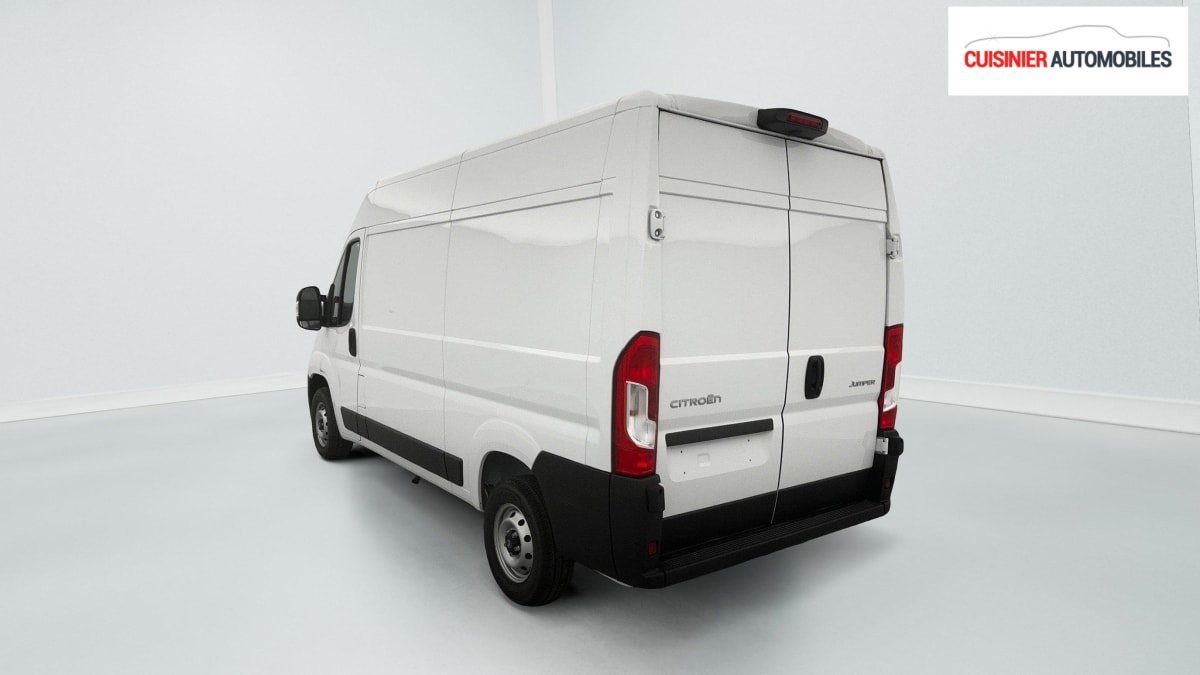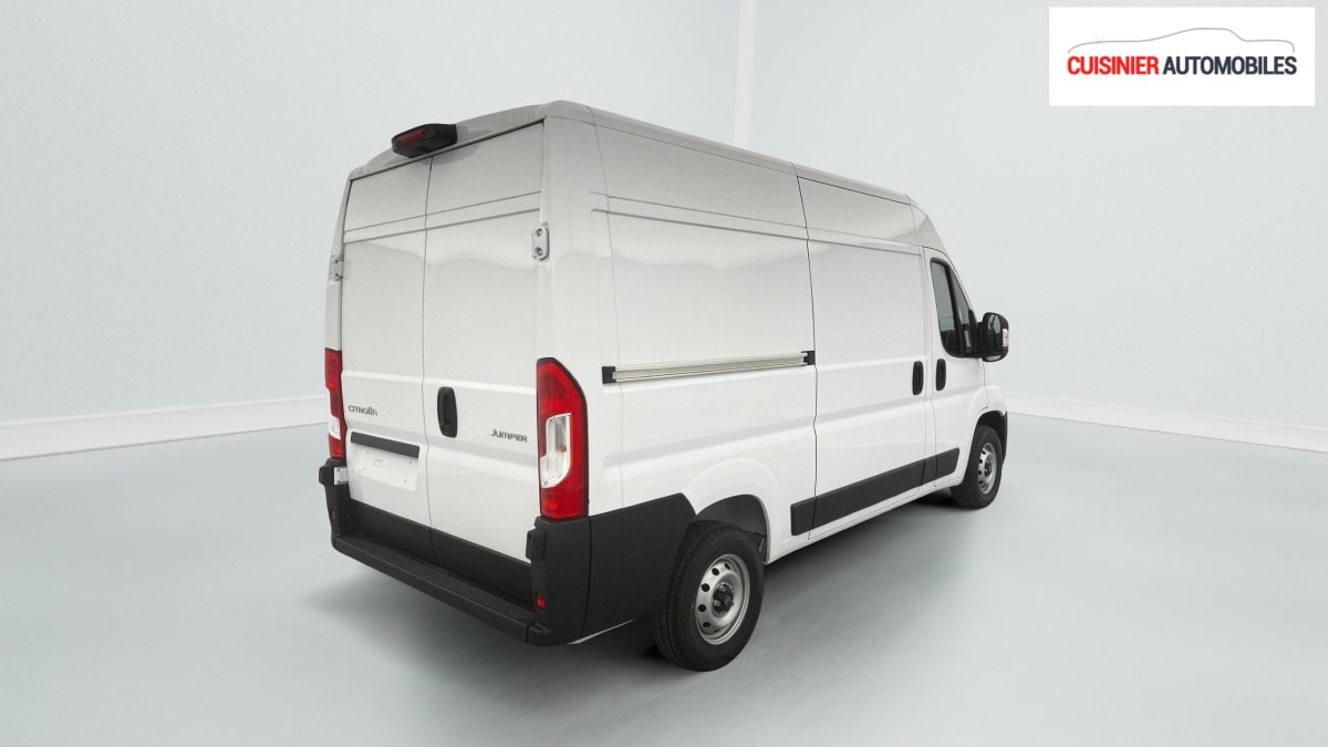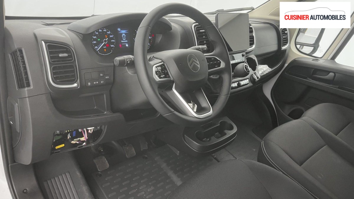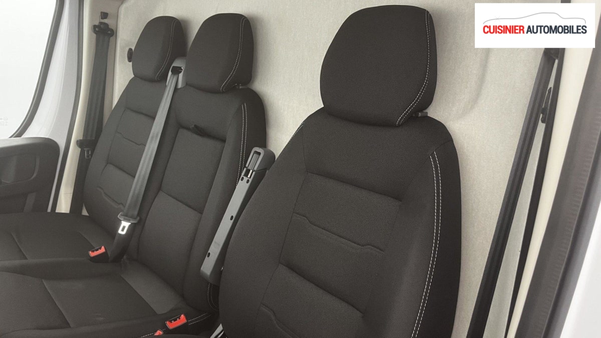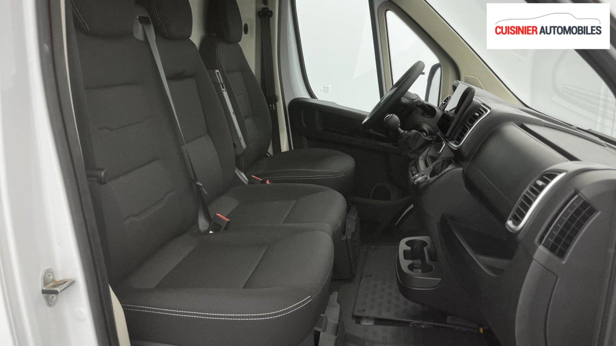 FOURGON NOUVEAU TOLE 33 L2H2 140 S BVM6, diesel, blanc, 20/06/2024, Condamnation centralisée avec plip, Lève-vitres AV électriques, Airbag conducteur, Airbag passager, Porte latérale coulissante droite tôlée, ABS, AFU, ASR et ESP (ESC amélioré avec assistance en cas de vent latéral, contrôle de stabilité de la remorque, et freinage après collision), Rétroviseurs extérieurs électriques et dégivrants, Régulateur - limiteur de vitesse, Banquette passager biplace, Avertisseur sonore de marche AR, Caméra de recul avec lignes de guidage actives, Boitier télématique Autonome (BTA), Crochets d'arrimage latéraux dans l'espace de chargement, Direction assistée électrique, Pack Sécurité Freinage d'urgence autonome avec détection piéton / cycliste, Aide au maintien dans la voie, Reconnaissance des panneaux de signalisation, Détecteur de fatigue ou d'inattention (attention assist), Adaptation intelligente de la vitesse : Freinage d'urgence autonome avec détection pieton / cycliste (AEBS) Reconnaissance des panneaux de signalisation Aide au maintien dans la voie Détecteur de fatigue ou d'inattention (attention assist) Adaptation intelligente de la vitesse, Pare-choc AV grainé, Cloison tôlée, Capucine de rangement : option incluse (valeur : 120 Eur TTC), Portes AR a 2 battantes tôlées, Aide au stationnement AR avec avertisseur sonore pour piétons, Pack Premium Connect : Projecteurs antibrouillard avec la fonction Cornering Climatisation automatique Système multimédia écran tactile 10'' avec Apple CarPlay et Android Auto sans fil + Navigation Capteurs de pluie et de luminosité + commutation automatique des feux de route Carter sous siège conducteur Double Port USB (A & C) Projecteurs FULL LED Rangement sous siège conducteur Volant et pommeau de levier de vitesses cuir Intérieur Techno Sellerie intermédiaire en tissu crêpe noir avec nouveau graphique du dossier + double surpiqures argentées + appuietête plein en tissu : option incluse (valeur : 2 640 Eur TTC), Pack Roue de secours Roue de secours, Support roue de secours : Roue de secours Support roue de secours : option incluse (valeur : 240 Eur TTC), Antenne radio numérique, Volant réglable en hauteur, Siège conducteur avec réglage en hauteur, réglagle lombaire et accoudoir