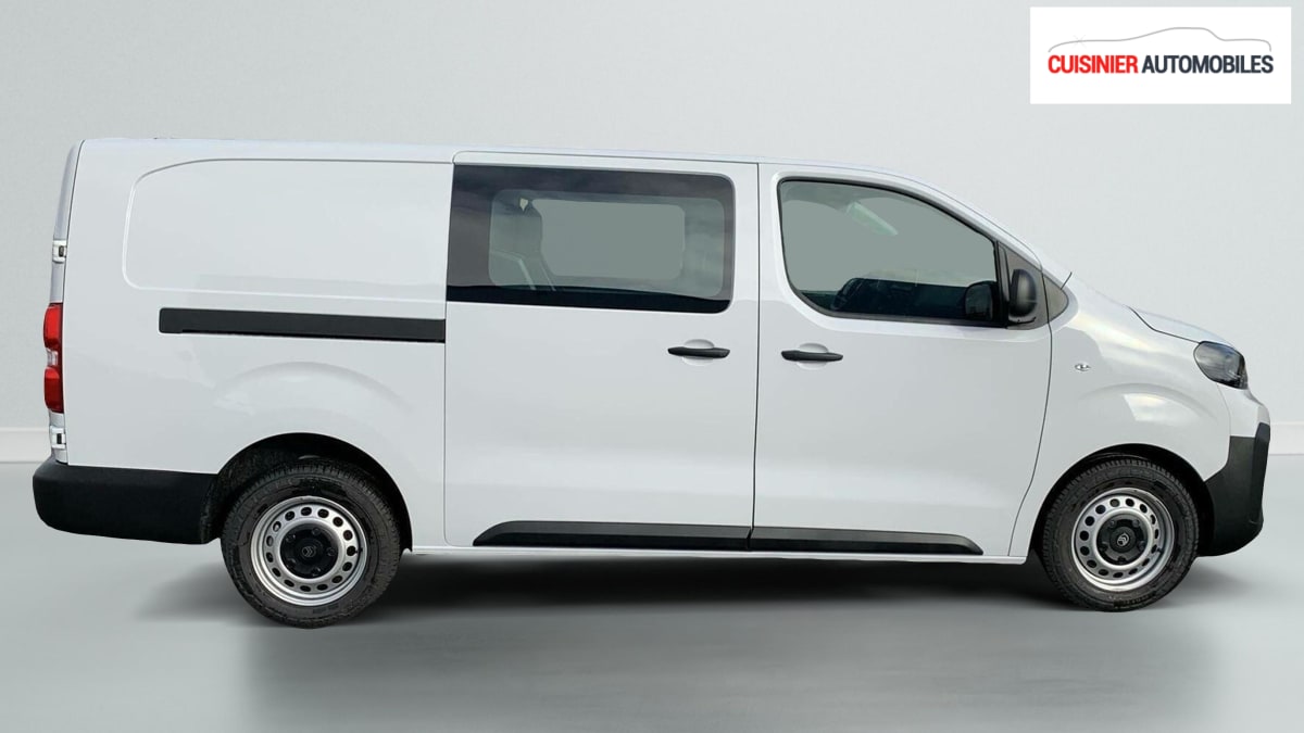 Cabine Approfondie XL BLUEHDI 180 S EAT8, diesel, blanc, 26/11/2025, Airbags frontaux conducteur et passager, Régulateur - limiteur de vitesse, Aide au stationnement AR, Porte latérale coulissante droite, Direction assistée, Rétroviseurs extérieurs électriques et dégivrants, Charge utile majorée, Vitres latérales surteintées en Rang 2, Climatisation manuelle régulée en température, Pack Sécurité : Reconnaissance des panneaux de vitesse et recommandation Freinage automatique d'urgence avec alerte risque de collision Assistance au maintien dans la voie Commutation automatique des feux de route Détection inattention conducteur, Pare-brise feuilleté acoustique, Roue de secours homogène (jante tôle noire) : option incluse (valeur : 216 Eur TTC), Revêtement de sol TPO en rangs 1 et 2, Vitres latérales fixes surteintées acoustiques en rang 2, Teinte de caisse opaque, Détection de sous-gonflage indirecte, Allumage automatique des feux de croisement et des essuie-vitres AV, Vitres latérales fixes en rang 2, ABS, AFU, ASR et ESP avec aide au démarrage en pente, Anneaux d'arrimage 6 répartis uniformément sur la zone de chargement, Lève-vitres AV électriques impulsionnels, Panneaux de garniture de type Isorel en rang 2 et 3, Garnitures pavillon habitacle en rang 2, Rétroviseur intérieur prismatique, Banquette fixe 3 places en rang 2 avec appui-tête réglables et 2 accoudoirs, position unique conforme aux réglementations fiscales pays, avec coffre de rangement amovible sous assises gauche et centrale (accessible depuis habitacle) et avec zone pour charge longue sous assise droite (accessible par la zone de chargement), Prise 12V (1200 W max) dans la boîte à gants, Sécurité enfants mécanique, Airbags latéraux AV tête-thorax en rang 1 et airbags rideau pour tête, Boucliers, Poignées de portes extérieures, Enjoliveur(s) de rail de porte latérale coulissante Baguettes latérales et Coques de rétroviseurs extérieurs noirs teintés masse, Jantes tôle 16" grises, Portes AR battantes 50/50 tôlées à ouverture à 180°, Projecteurs halogène (H15) avec feux diurnes intégrés, Sellerie Tissu bi-ton noir-gris, Pack Caméra : Mirror Screen (compatible avec Android Auto et Apple CarPlay) Ecran tactile 10'' HD couleur Caméra de recul 180° avec affichage sur écran tactile 10'' HD couleur : option incluse (valeur : 960 Eur TTC), Contrôle de la pression des pneus, Commandes au volant du système audio et du régulateur-limiteur de vitesse, Boitier télématique appel d'urgence, Volant réglable en hauteur et en profondeur, Condamnation centralisée des portes