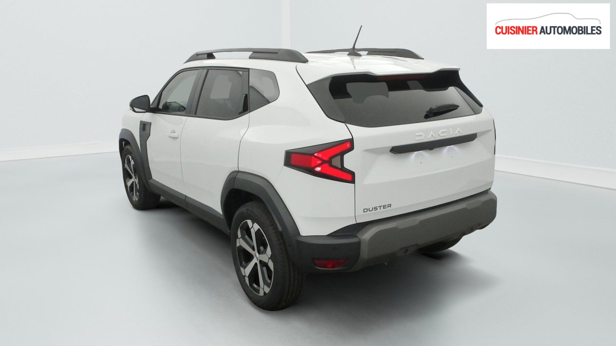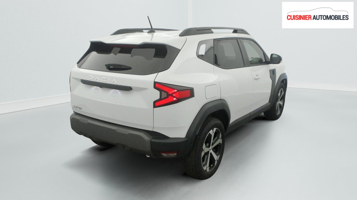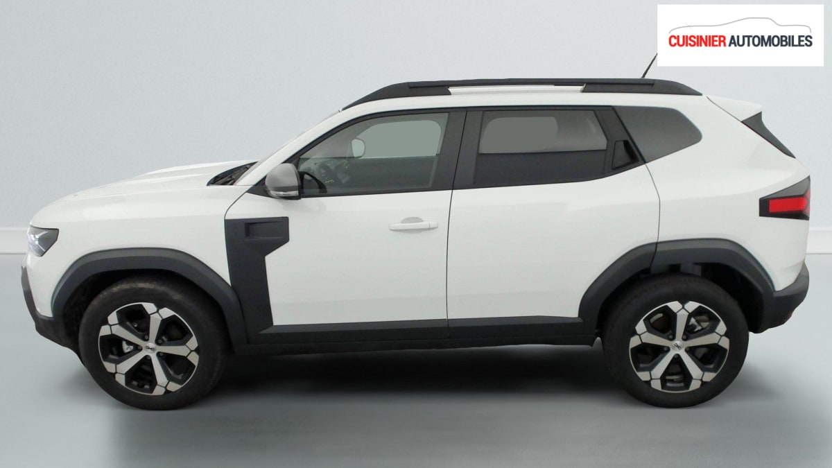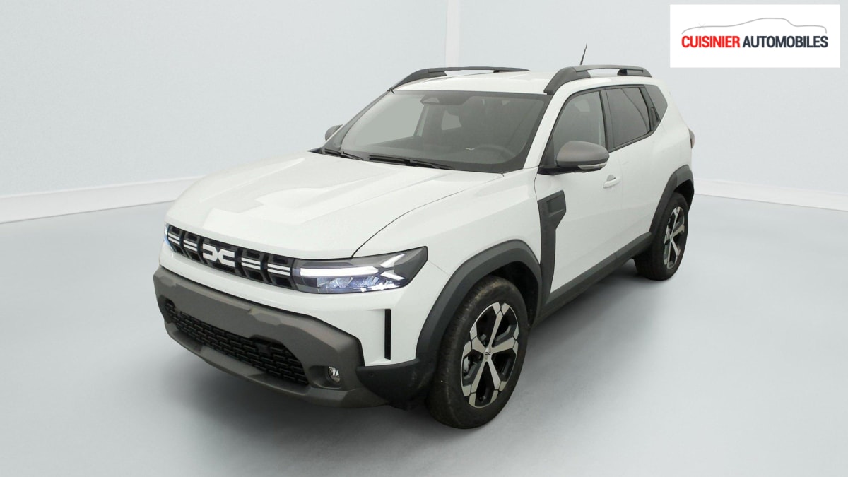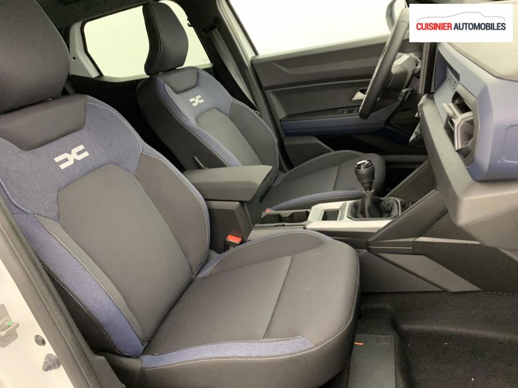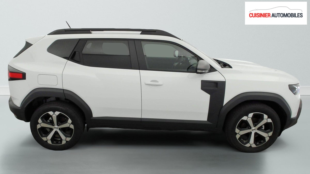 TCe 130 4x2 Journey, hybride, blanc, 01/08/2025, Projecteurs antibrouillard, Barres de toit longitudinales, Lunette AR dégivrante, Système anti-blocage des roues (ABS), Kit de gonflage, Airbag passager déconnectable, Système de fixation Isofix, Volant Soft Feel, Climatisation automatique, Volant réglable en hauteur et en profondeur, Frein de parking électrique, Airbags latéraux AV et rideaux, Mode éco, Allumage des feux automatique et essuie-glace automatiques, Commutation automatique feux de croisement/route, Feux de croisement à LED, Siège conducteur réglable en hauteur et profondeur, Lève-vitres AV / AR électriques, Appel SOS (E-call), Avertissement distance de sécurité, Banquette AR rabattable 40/60, Système de contrôle de trajectoire (ESC) et aide au démarrage en côte, Airbag AV conducteur et passager, Vitres AR surteintées, Signature lumineuse en "Y" à LED, Répétiteurs latéraux à LED, Alerte franchissement de ligne et assistant maintien dans la voie, Prise 12V coffre, Recharge smartphone par induction, Plancher de coffre plat, Console centrale semi haute avec accoudoir, Pack City: Caméra Multiview Avertisseur d'angles morts Radars AV/AR : option incluse (valeur : 490 Eur TTC), Système de surveillance de l'attention du conducteur, My Safety Switch (bouton de déconnexion des aides à la conduite), Rétroviseurs extérieurs électriques, dégivrants et rabattable électriquement, Media Nav Live ( Navigation avec trafic en temps réel + Système audio 3D Arkamys, 6HP), Radars de recul, Reconnaissance des panneaux de signalisation avec alerte de survitesse, Régulateur et limiteur de vitesse, Tableau de bord numérique 7", Antenne radio 30cm, Jantes alliage diamantées 18'' TAGASAN, Pack Cold : Sièges AV chauffants Volant chauffant Siège passager réglable en hauteur + lombaire conducteur : option incluse (valeur : 300 Eur TTC), Détection de perte de pression des pneus, Sellerie spécifique "Denim" avec logo Dacia réflechissant, Système de freinage d'urgence avancé (piéton, deux-roues et intersection), Système de contrôle de traction (TCS), Verrouillage centralisée, Direction assistée, Peinture opaque