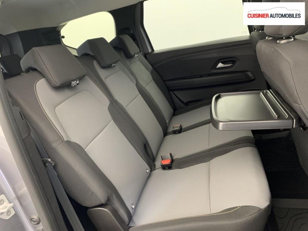 ECO-G 100 7 places GSR2 Extreme, essence, gris, 07/08/2025, Lève-vitres AR électriques, Condamnation des ouvrants en roulant, Rétroviseur intérieur jour/nuit, Lève-vitre conducteur électrique impulsionnel, Ordinateur de bord, Eclairage du coffre, Filtre à particules, Système anti-blocage des roues (ABS), Kit de gonflage, Aide au parking AR, Système de fixation Isofix, Caméra de recul, Carte mains libres, Vitres, portes AR, custode et lunette AR surteintées, Climatisation automatique, Volant réglable en hauteur et en profondeur, Détection de pression des pneus, Allumage des feux et essuie-glace automatiques, 3 appuis-têtes AR, Barres de toit modulables, Cluster TFT, Volant Soft Feel TEP, Airbag frontal conducteur et passager, Airbag latéral AV : thorax + rideau, Assistance au freinage d'urgence + allumage des warnings, Bouton appel d'urgence E-call, Feux AR avec signature lumineuse Y, Signature lumineuse DACIA en Y à LED, Feux de jour à LED, Airbag frontal passager désactivable, Rappel de bouclage de ceintures, Régulateur de vitesse, Eclairage plafonnier AR, Banquette AR avec dossier rabattable en portefeuille 1/3 -2/3, Mode éco, Prise accessoire en rang 3, Rétroviseurs extérieurs réglables électriquement + dégivrants, Siège conducteur réglable en hauteur + accoudoir AV, Media display (écran 8'', réplication smartphone, 4 haut-parleurs, 1 port USB), Feux anti brouillard, Condamnation centralisée des portes, Enjoliveurs bas de porte coffre, Rétroviseurs extérieurs non ton caisse, Stripping Extreme, Extended Grip, Sellerie spécifique Extreme avec surpiqûres Brun Cuivré, Système de freinage d'urgence avancé (pieton, deux-rorues et intersection), Système de surveillance de l'attention du conducteur, Reconnaissance des panneaux de signalisation avec alerte de survitesse, Prédisposition Ethylotest, Alerte franchissement de ligne et assistant maintien dans la voie, Jantes alliage 16'' MAHALIA diamantée noir avec cabochon Brun Cuivré, Pack Confort+ : Aide au parking AV / AR Détecteur d'angle mort Frein de parking électrique Console semi-haute + rangement fermé avec accoudoir : option incluse (valeur : 500 Eur TTC), Système de contrôle de traction (TCS), Boîte de vitesse manuelle, Peinture métallisée : option incluse (valeur : 600 Eur TTC), Direction assistée, ESP