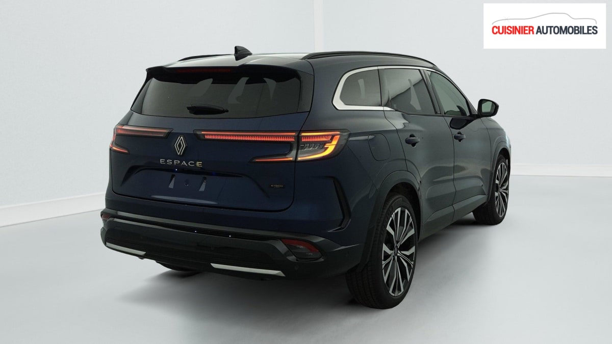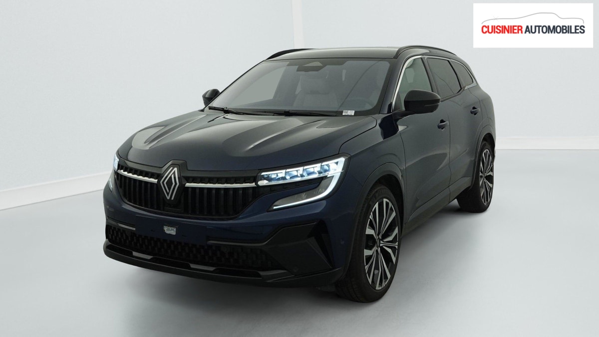 VI E-Tech full hybrid 200 GSR2 Iconic, hybride, bleu, 30/07/2025, Contrôle dynamique de trajectoire ESC, Barres de toit longitudinales, ABS, Airbags frontaux conducteur et passager, Airbags latéraux AV, Lève-vitres AV électriques, Peinture métallisée : option incluse (valeur : 800 Eur TTC), Direction assistée, Commutation automatique des feux de route/croisement, Système de surveillance de la pression des pneus, Multi-sense, Carte Renault accès et démarrage mains libres, Chargeur smartphone à induction, Sièges AV chauffants, Volant chauffant, Alerte de distance de sécurité, Avertisseur d'angle mort et prévention sortie de voie en cas de dépassement, Régulateur de vitesse adaptatif, Frein de parking électrique avec fonction Auto-Hold, 4Control advanced, Caméra 3D vision 360°, Feux AV full LED Adaptative Vision, Climatisation automatique bi-zone, Faux plancher de coffre, Hayon motorisé main libre, Miroir de surveillance enfants, Lumière d'ambiance personnalisable, Rétroviseur intérieur électrochrome sans cadre, Rétroviseurs extérieurs électriques à mémoire, dégivrants, rabattables automatiquement, Volant réglable en hauteur et profondeur, Ciel de toit gris anthracite, Clignotants AR dynamiques, Feux AR à LED avec effet 3D, Jantes alliage 20" Effie diamantées noir, Seuil de portes, Tableau de bord full numérique 12, 3'', Alerte franchissement de ligne et assistant maintien dans la voie, Avertisseur de sortie de stationnement en marche AR avec freinage d'urgence automatique, Sortie sécurisée des occupants, Assistance de conduite avec une remorque, Parking mains-libres (inclus aides au parking AV, AR et latérale), 7 places, Banquette AR coulissante 1/3-2/3 avec dossier 40/20/40, Sièges AV électriques à mémoire avec réglage et massage lombaire conducteur, Eclairage d'accompagnement au sol avec projection logo, Sellerie cuir gris sable clair perforée avec surpiqûres et joncs ambrés, Prises au rang 3, Système Multimédia openR link 12" : navigation, services Google, audio Arkamys Auditorium, Système ISOFIX sur siège passager & 2 places rang 2, Roue de secours temporaire : option incluse (valeur : 200 Eur TTC), Alerte détection de fatigue, Prédisposition éthylotest, Détection intelligente des limitations de vitesse et prévention survitesse, Contrôle de la traction (TCS), Boîte de vitesse automatique 4 rapports, Verrouillage centralisée