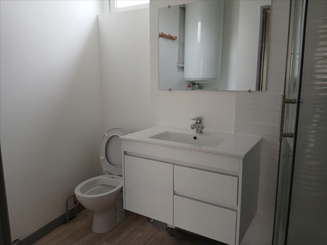 comprenant entrée,salle d'eau, chambre donnant sur l'arrière, et pièce de vie avec cuisine aménagée