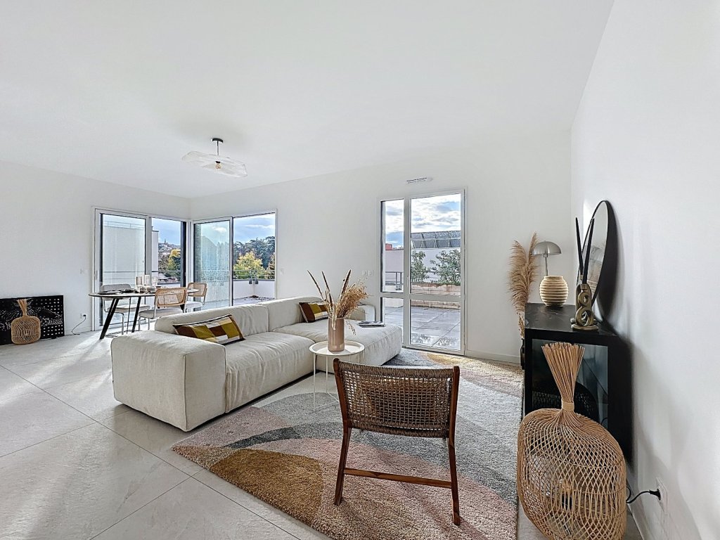L'atout majeur de cet appartement est sa vaste terrasse de 98 m², principalement orientée plein sud. Cette large surface extérieure prolonge le séjour et invite à la détente, aux repas en plein air ou à l'aménagement d'un espace jardin en pots, tout en bénéficiant d'un bel ensoleillement. L'appartement étant en attique, l'intimité et la vue sont des avantages supplémentaires.