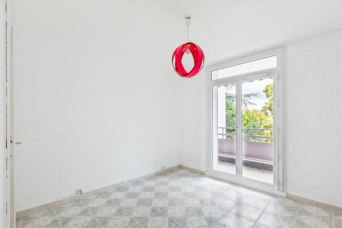 L'entrée débouche sur la pièce de vie principale, baignée de lumière naturelle et sans vis à vis, donnant sur un parc arboré. L'appartement dispose également d'une cuisine séparée, de deux chambres, dont l'une s'ouvre sur un balcon de 4 m², d'une salle de bains et de toilettes séparées.