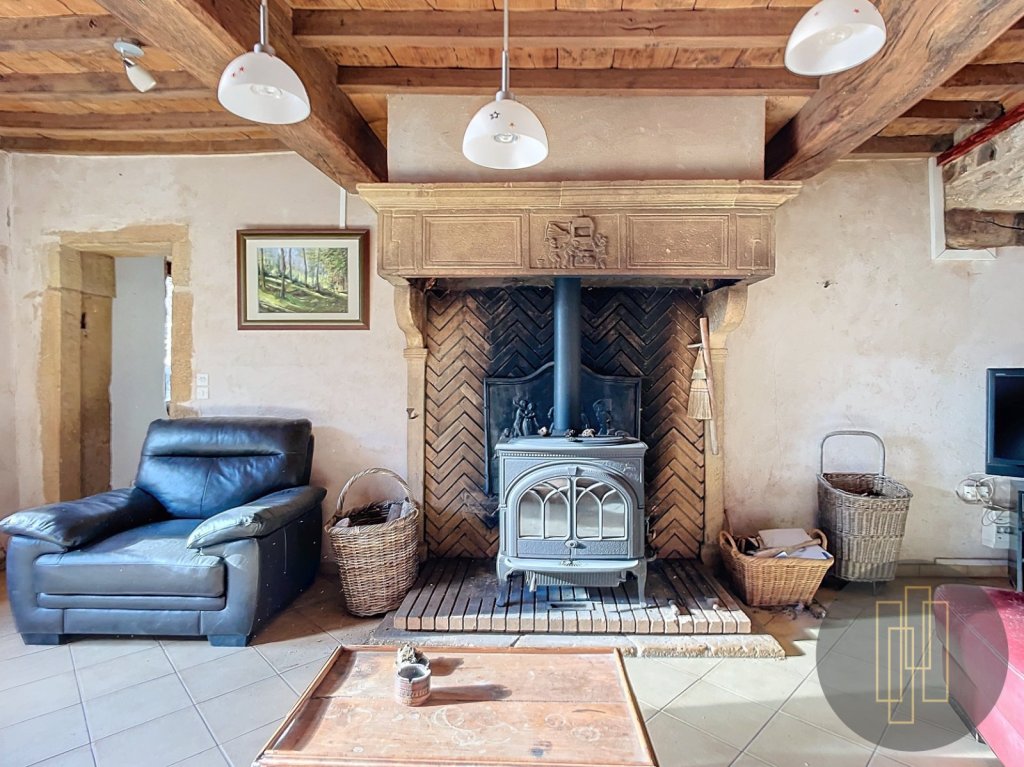 La maison principale d'environ 197 m² se compose au rez-de-chaussée d'un vaste séjour de 35 m² agrémenté d'une cheminée chaleureuse, d'une cuisine séparée, d'une buanderie, d'un cellier, ainsi qu'un WC.