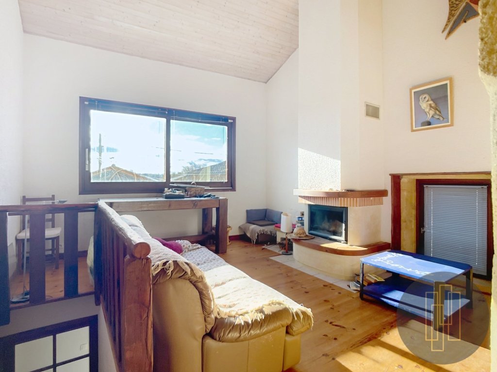 À l'étage : 3 chambres, dont une suite parentale avec salle d'eau privative, une salle de bains, un spacieux bureau de 33 m² et un salon convivial avec cheminée et mezzanine.