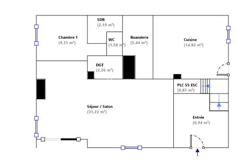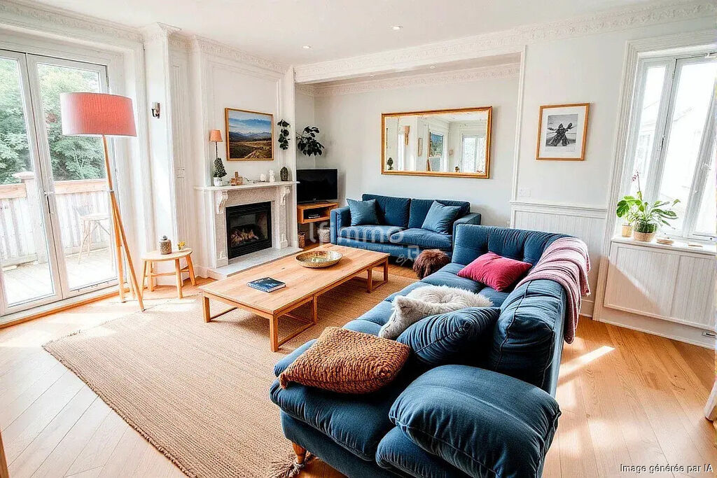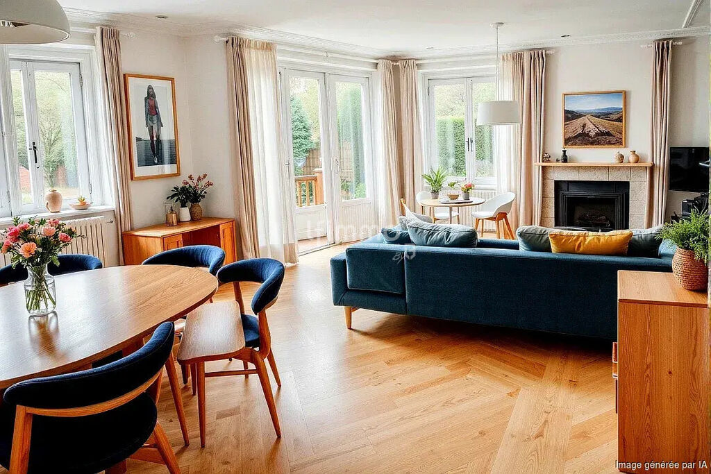 • Séjour lumineux de 31 m², exposé Sud-Ouest, avec cheminée à insert
