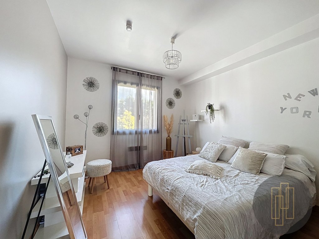En surplomb du séjour , une chambre avec une jolie vue ainsi qu'un espace bureau.