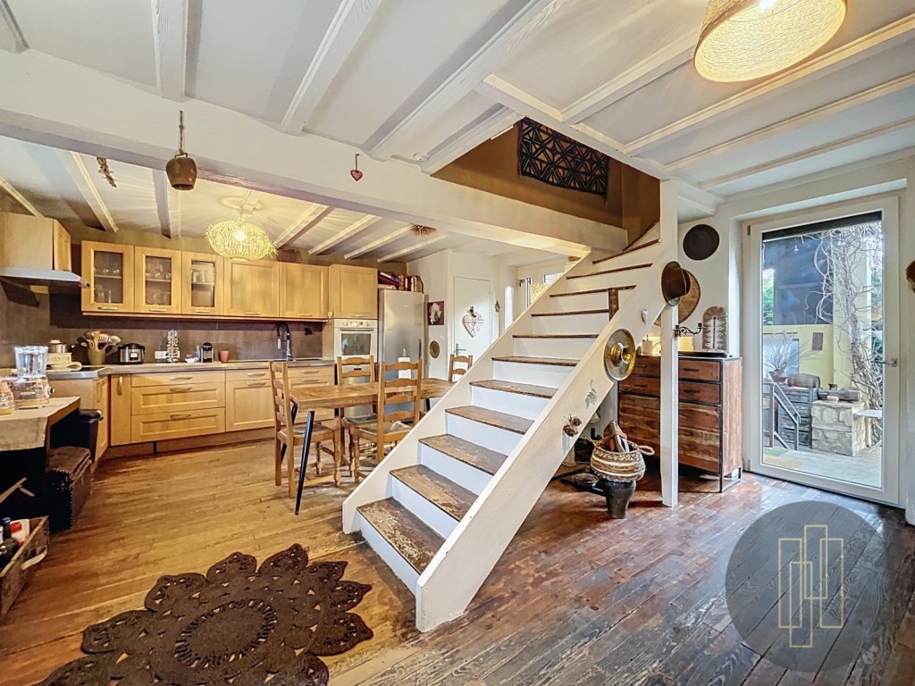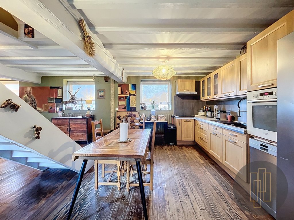 Située à Ambérieux, à seulement 30 minutes de Lyon, cette maison ancienne de caractère développe 166 m² habitables sur une parcelle de 561 m². Dès l'entrée, le rez-de-chaussée séduit par un séjour traversant Est/Ouest, avec cuisine ouverte, doté d'un parquet chaleureux et d'un poêle à bois qui crée une atmosphère conviviale.