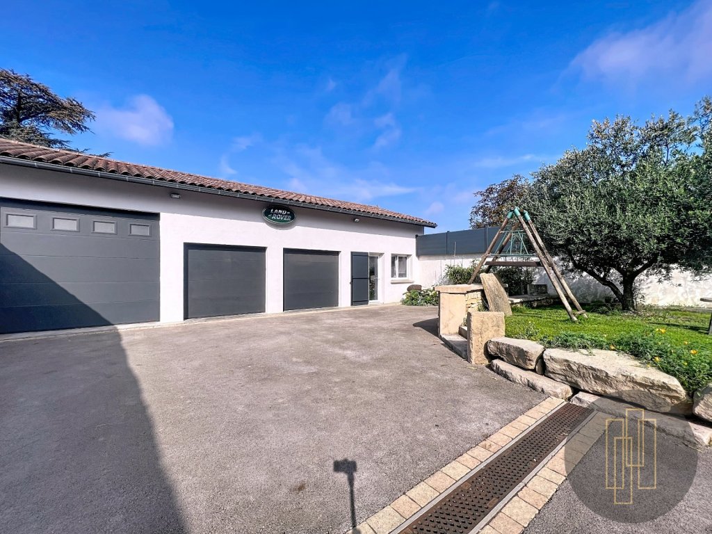 L'extérieur propose un jardin soigné, une terrasse conviviale, et un triple garage indépendant de 97 m² avec plusieurs stationnements.