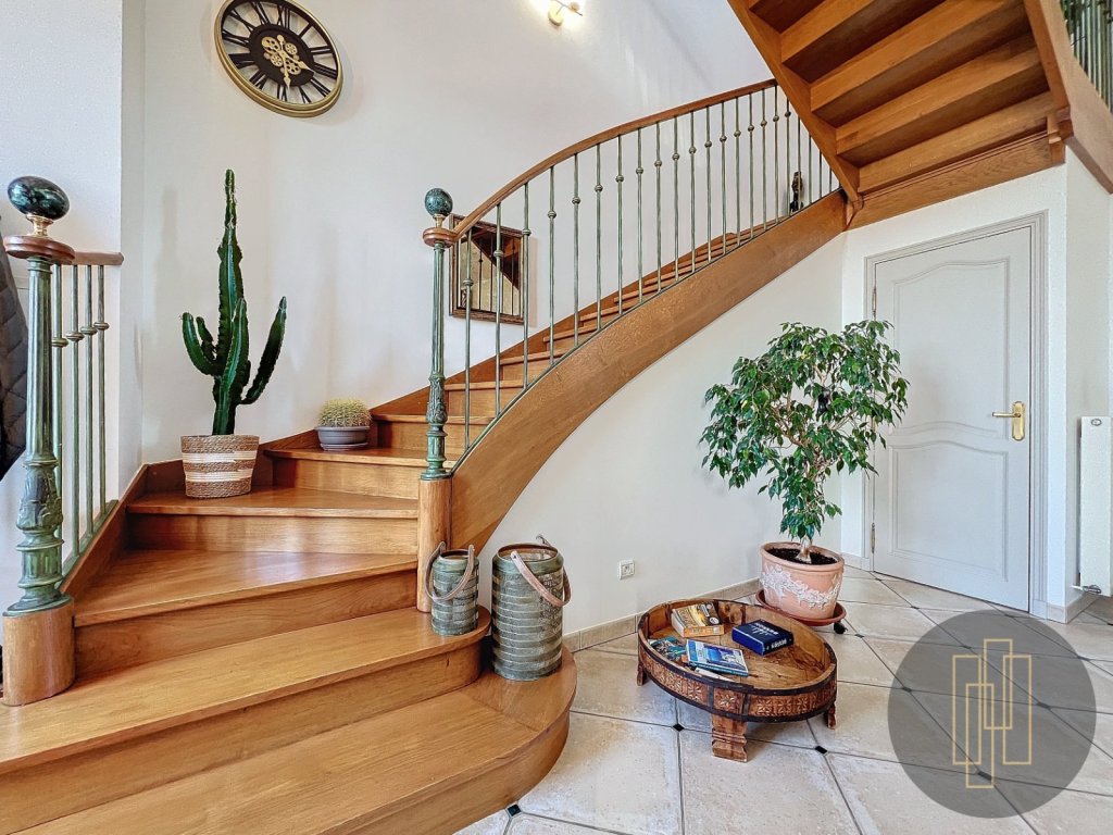 À l'étage, accessible par un bel escalier, vous trouverez deux chambres spacieuses de 26 et 16 m², ainsi qu'une grande salle de bains. Le palier aménageable peut servir de salon intime, de bureau, de salle de jeux ou même de quatrième chambre, ajoutant une touche chaleureuse et authentique à l'espace.