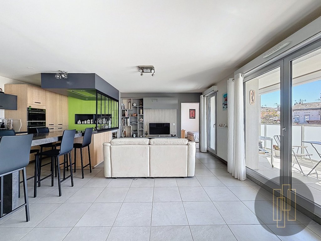 Dès l'entrée, vous serez séduit par une pièce de vie lumineuse, prolongée par une magnifique terrasse offrant une agréable vue dégagée sur les toits de Villefranche, le Beaujolais.