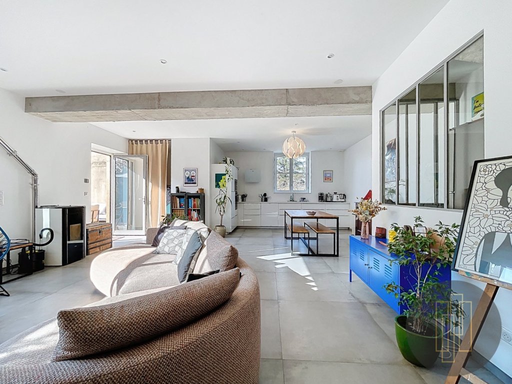 Exceptionnel aux portes de Villefranche , dans une belle copropriété , l'aménagement d'un cuvier s'est transformé en Loft de 116.75m² avec jardin privatif.