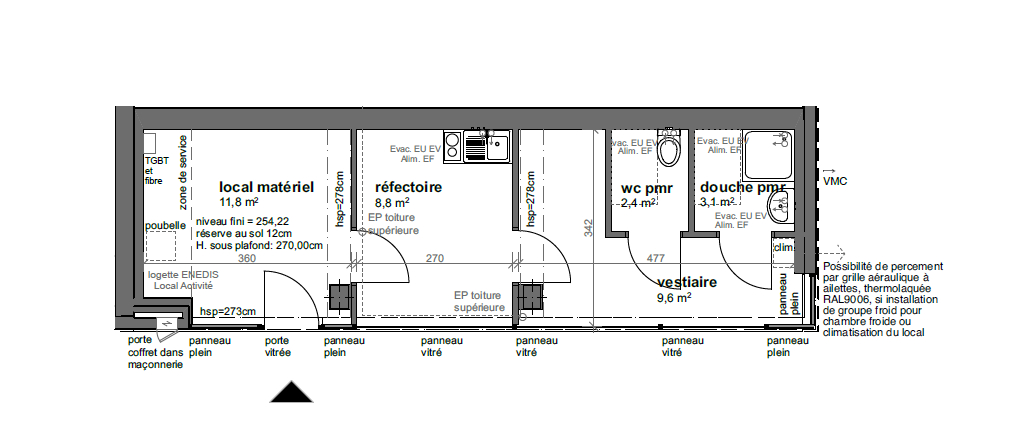 Le bien, en très bon état se compose d'une pièce principale modulable, un espace réfectoire, ainsi qu'un vestiaire. Le local dispose également de sanitaires indépendants (WC et douche). Cet espace convient parfaitement pour une activité tertiaire : bureaux, professions libérales, espaces créatifs ou collaboratifs, cabinets de conseil, etc. Toutes activités de bouches sont proscrites (restauration, traiteur, etc.)