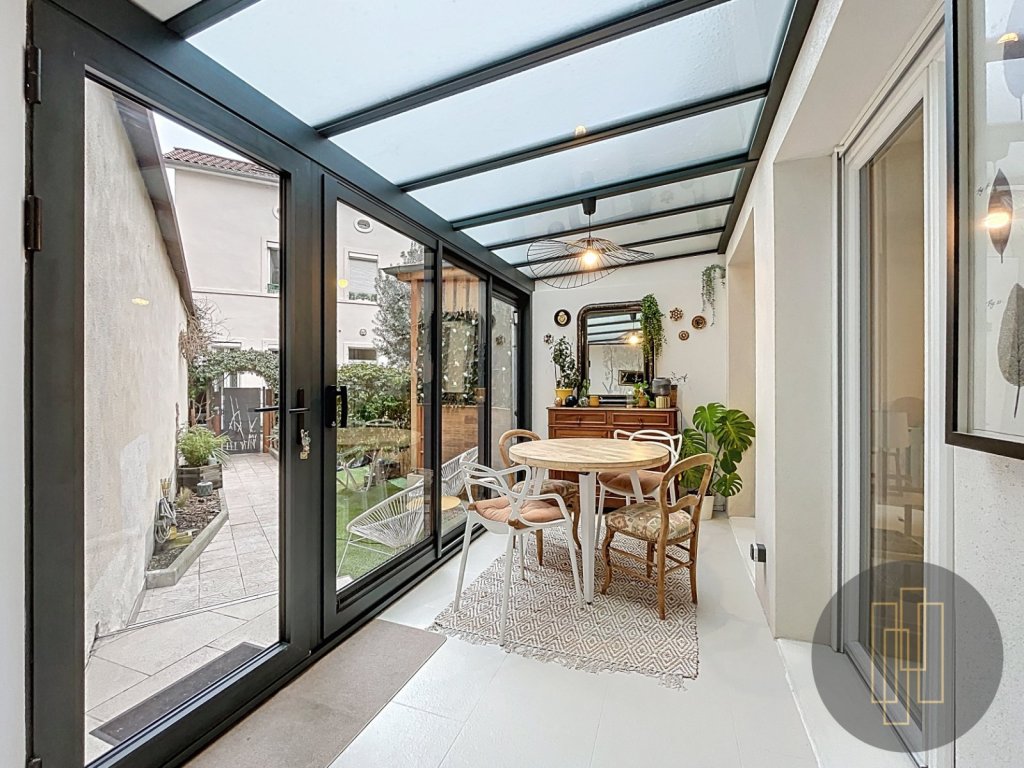 - Au rez-de-chaussée, une vaste pièce de vie accueille un espace salon avec cuisine ouverte équipée. Cet espace est prolongé par une agréable véranda chauffée et parfaitement isolée, offrant une véritable pièce supplémentaire utilisable toute l'année. Un WC indépendant complète ce niveau.