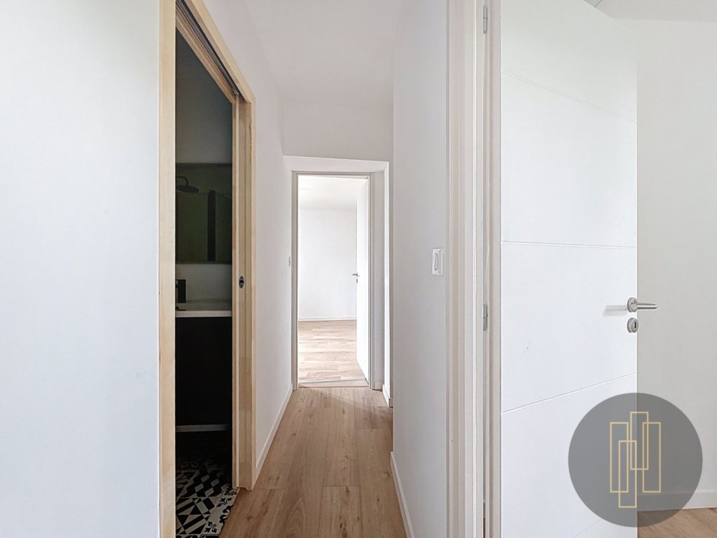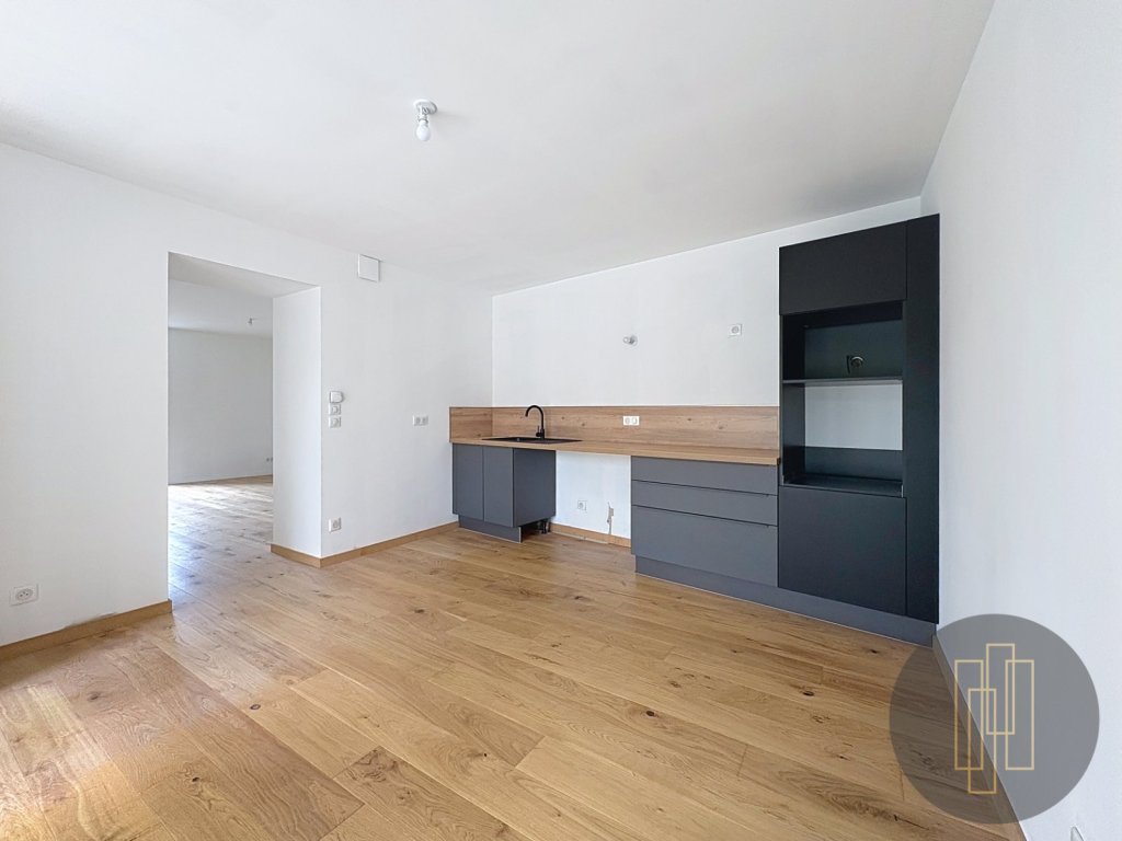 Au premier niveau, elle offre une cuisine avec accès direct sur la terrasse, un salon lumineux ainsi qu'un WC.