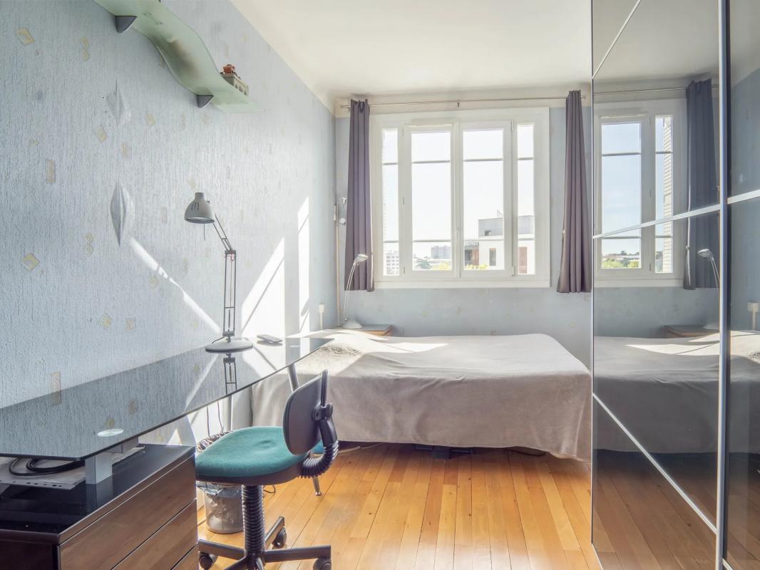 La partie nuit se compose d'une très grande chambre de 18 m², dotée de rangements et offrant la possibilité d'être redivisée en deux chambres, comme c'était le cas à l'origine, ce qui permet une flexibilité d'aménagement rare. Une seconde chambre d'environ 12 m² vient compléter l'espace, ainsi qu'une salle de bains fonctionnelle et des toilettes séparées.