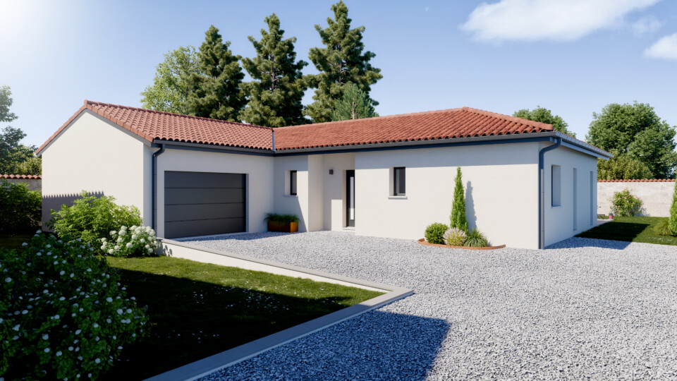 une maison plain pied de 126 m² aux prestations de qualité, offrant 1 belle pièce de vie, 4 chambres dont suite parentale plus 1 garage de 29 m²