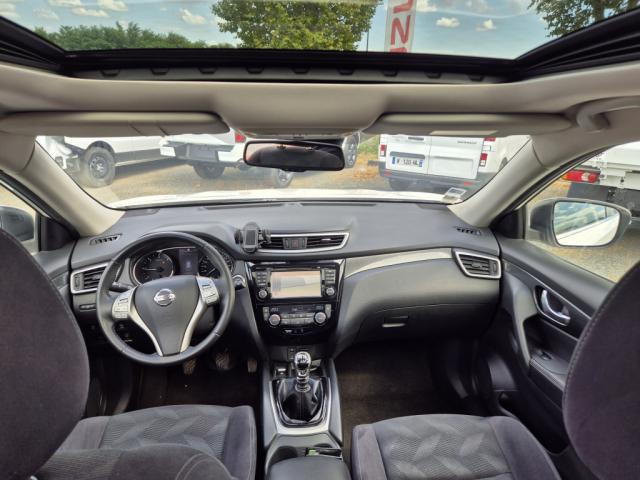 1.6 dCi 130 5pl Connect Edition, diesel, blanc, 17/04/2015, ABS Système antiblocage des freins, Accoudoir AR avec porte-gobelets, Accoudoir conducteur, Aide au démarrage en côte, Airbag passager déconnectable, Airbags frontaux, latéraux AV et rideaux, Allumage automatique des phares, Banquette AR coulissante et rabattable 60/40, Barres de toit longitudinales couleur argent, Boîte de vitesses manuelle 6 vitesses, Ceintures de sécurité AR 3 points à enrouleur, Ceintures de sécurité AV 3 points avec prétensionneur et limiteur d'effort, Climatisation automatique bi-zone, Contour des vitres latérales chromé, EBD Répartiteur électronique de freinage, ESP Contrôle électronique de trajectoire, Ecran TFT couleur 5", Essuie-glace AV à déclenchement automatique, Fermeture et ouverture centralisées des portes à distance, Feux diurnes à LED avec signature lumineuse, Frein à main électrique, Hayon électrique, Insert chromé sur le pare-chocs AV, Jantes alliage 19", NBAS Amplificateur de freinage d'urgence, Pare-soleil conducteur et passager avec miroir de courtoisie, Phares antibrouillard AV avec cerclages chromés, Phares halogènes, Plancher de coffre modulable, Poignées de portes chromées, Points d'ancrage de siège enfants ISOFIX à l'AR, Radars de stationnement AV et AR, Roue de secours, Régulateur et limiteur de vitesses avec commandes au volant, Répétiteur de clignotants dans les rétroviseurs, Rétroviseur intérieur électrochromatique, Rétroviseurs extérieurs à réglages électriques et dégivrants, Sellerie Tissu, Siège conducteur réglable en hauteur, Sièges AV anti-fatigue, Système antidémarrage, Système audio RDS CD avec commandes au volant, 6HP et connexion USB, Système d'ouverture et de démarrage sans clé "Intelligent key", Système de contrôle de la pression des pneus TPMS, Système mains libres Bluetooth avec commandes au volant, Toit panoramique en verre à ouverture électrique, Vitres AV et AR électriques, Vitres latérales AR et vitre de hayon surteintées, Volant et pommeau de levier de vitesses gainés cuir, Volant réglable en hauteur et en profondeur, Alerte de franchissement de ligne (Nissan Safety Shield), Feux de route intelligents (Nissan Safety Shield), Freinage d'urgence autonome AEB (Nissan Safety Shield), Système de reconnaissance des panneaux de signalisation (Nissan Safety Shield), Active Trace Control (Contrôle actif de trajectoire) (Système "Châssis Control"), Body Motion Control (Contrôle actif de l'assiette) (Système "Châssis Control"), Services connectés (Nissan Connect), Système audio RDS CD avec commandes au volant, 6 HP, lecture des formats MP3 et WMA (Nissan Connect), Système de navigation avec fonction Info Trafic, cartographie Europe 3D, indicateur d'éco conduite et écran tactile couleur de 7" (Nissan Connect), Caméra AR avec repères de gabarit (Nissan AVM - Vue panoramique 360°), Caméra AV (Nissan AVM - Vue panoramique 360°), Caméras latérales situées dans les rétroviseurs (Nissan AVM - Vue panoramique 360°)