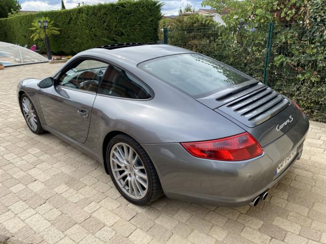 CARRERA COUPE 997 S Coupé 3.8i, essence, gris, 13/05/2008, 3ème feu stop, Affichage analogique: régime moteur, vitesse, pression et témperature d'huile, témperature de refroidissement et niveau d'essence, Affichage numérique: kilométrage total et journalier, heure, témperature extérieure et vitesse, Aileron AR télescopique, Airbag conducteur et passager, Alarme antivol, Anti-démarrage, Arceau de sécurité à déploiement automatique, Bloc séparé de feux supplémentaires intégré dans bouclier feux de position, clignotants, anti-brouillard, Bouclier avec entrées d'air pour refroidissement, Boucliers AV et AR déformables avec pare-chocs intégrés en alliage, Boîte automatique Tiptronic à 5 rapports avec commandes au volant, Boîte à gants verrouillable, Capote entièrement électrique à ouverture automatique, lunette AR chauffante en verre, Ceintures de sécurité 3 points automatiques AV/AR, boucle de ceinture sur les sièges, Ceintures de sécurité à prétensionneurs et limiteurs de force, Ciel de toit garni de tissu noir, Climatisation automatique, Console centrale avec espace de rangement, Couvercle du coffre en Aluminium, Direction assistée variable, Eclairage du plancher, Essuie-glaces AV à 2 vitesses de balayage et intermittence, buses doubles chauffantes, Feu antibrouillard AR côté conducteur, Fond de compteur couleur aluminium, ISOFIX : Ancrages normalisés pour sièges enfants, Jantes Carrera S 19", Kit anti-crevaison avec compresseur électrique, Levier de vitesse et frein à main, poignées de portes, couvercles des rangements en cuir lisse, Miroirs de courtoisie éclairés avec languette pare-soleil, Ordinateur de bord, Ouverture électrique du coffre et du capot moteur, Pack Audio Plus, 9 HP, range-CD dans la boîte à gants, Phares bi-Xenon, Poignées des portière ergonomiques, Porsche Active Suspention Management (PASM), Porsche Communication Management (PCM) avec pré-équipement pour téléphone portable et interface audi, Porsche Side Impact Protection System (POSIP), Porte-gobelet AV, Pré-équipement pour montage ultérieur chargeur CD, Rangement supplémentaire derrière les sièges AR, Rétroviseurs extérieurs électriques dégivrants, Sièges AR rabattables séparément, Sièges AV avec appuis-tête intégrés, Sièges AV avec réglage électrique de dossier, réglage manuel en hauteur et profondeur, Sièges AV cuir partiel, Système de gestion de stabilité Porsche (PSM, Porsche Stability Management), Tableau de bord avec compte-tours central et affichage multifonctions, Verrouillage centralisé à télécommande incluant le déverrouillage du coffre, Vide-poches dans les portières, Vitres AV et AR électriques à impulsion avec dispositif anti-pincement, Vitres latérales AV avec revêtement hydrophobe, Vitres teintées thermo-isolées, Volant sport 3 branches en cuir