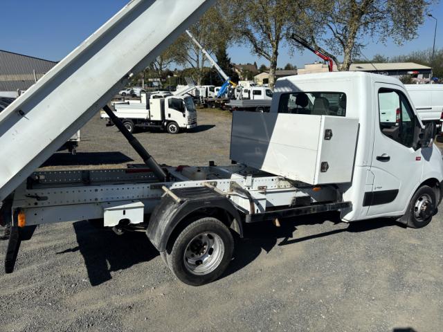 CHASSIS CABINE BENNE BASCULANTE ET COFFRE 3.5t 2.3 dCi 165 ENERGY E IV GRAND CONFORT, diesel, blanc, 05/05/2017, ABS avec EBV et assistance au freinage d'urgence, Accoudoir AV, Airbag conducteur à retenue programmée, Alternateur renforcé 185A, Anti-patinage des roues, Banquette 2 places avec dossier central rabattable, tablette pivotante et assise relevable, Bouclier non ton caisse, Bouton eco-mode, Calandre non ton caisse, Climatisation manuelle, Cloison complète vitrée, Condamnation automatique des ouvrants en roulant (CAR), Condamnation centralisée des portes avec télécommande, Contrôle dynamique de trajectoire ESP adaptatif à la charge, Extended Grip, Aide démarrage en côte, Couvercle sur planche de bord, Direction assistée, Enjoliveurs Mini, Filtre pollen, Habillage cloison, Lève-vitres AV électriques (impulsionnel à la descente côté conducteur), Motorisation Stop&Start, Ordinateur de bord, Peinture opaque, Porte-à-faux AR court, Projecteurs sans FBL (Fix Bending Light), R-Plug&Radio (avec afficheur intégré + Bluetooth), Roue de secours, Roues tôlées 16, Régulateur et limiteur de vitesse, Réservoir 100L, Rétroviseurs petits bras, Rétroviseurs électriques et dégivrants à double miroir, Sellerie tissu FUNAÏA (bleu/orange), Siège conducteur à réglage lombaire, Suspension normale, Tablette extractible planche de bord, Vitres teintées, Volant réglable en hauteur