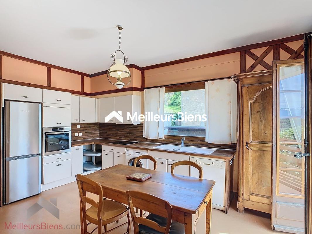 La cuisine séparée, d'une surface de 19 m², est entièrement aménagée et équipée avec des éléments électroménagers. Un espace de travail est également disponible, idéal pour le télétravail. Profitez de la salle à manger pour des moments de partage en famille.