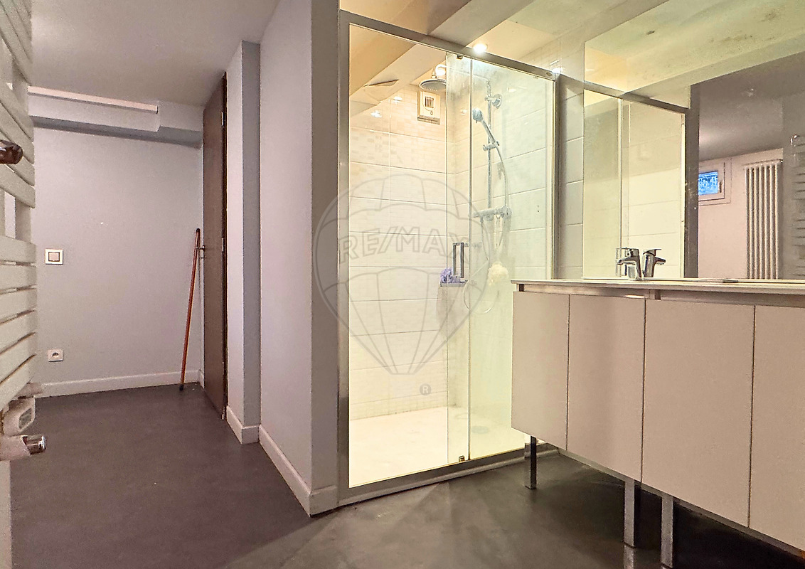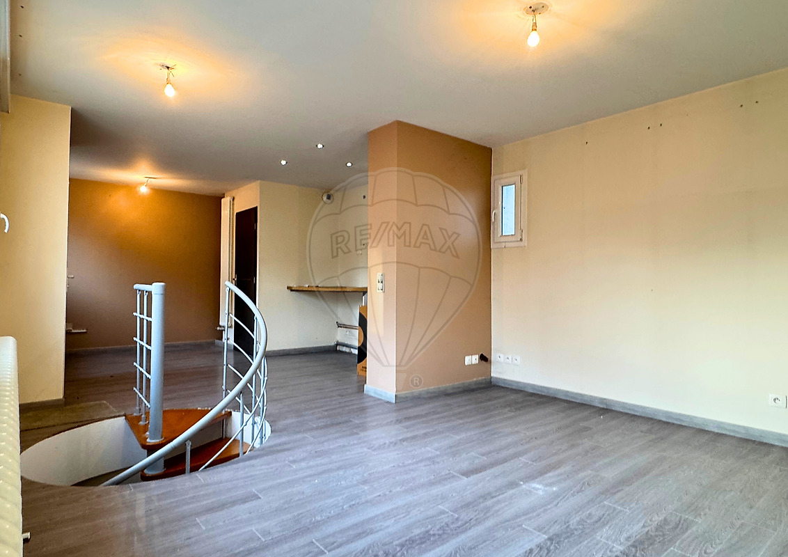 Le local se compose d'un séjour spacieux et lumineux, ouvert sur une cuisine à aménager ainsi qu'un WC. À l'étage inférieur, accessible par un escalier intérieur en colimaçon , une pièce avec salle d'eau et dressing, une seconde pièce et un WC séparé.