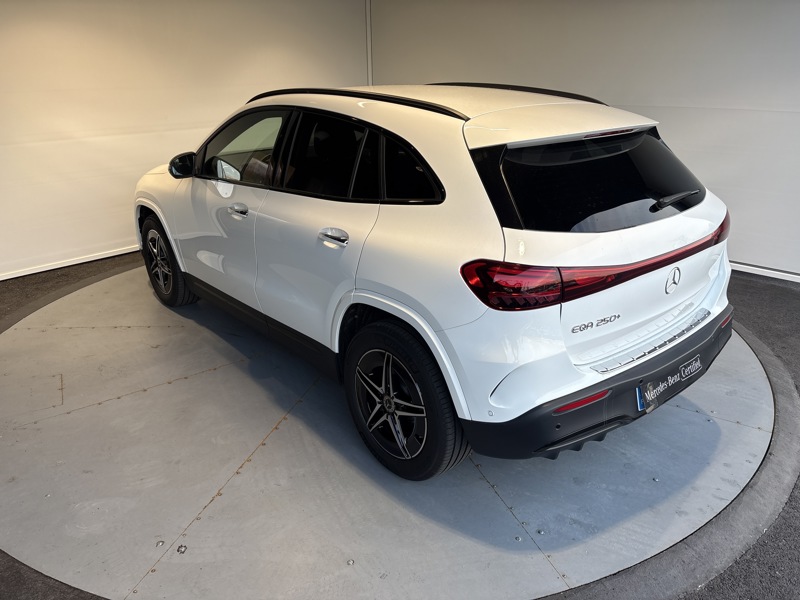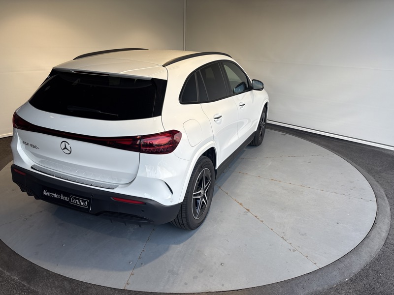 250+ Edition, électrique, blanc, 24/12/2024, Prééquipement pour services de navigation, Contrôle de la pression des pneus, Rétroviseurs extérieurs rabattables électriquement, Avertisseur de limitation de vitesse, Ciel de pavillon en tissu noir, Réception radio numérique DAB, Pare-soleil avec miroir de courtoisie éclairé, Climatisation automatique THERMOTRONIC, Assistant de feux de route, Projecteurs LED hautes performances, Prise de chargement, Train de roulement AGILITY CONTROL avec système d amortissement sélectif et niveau surbaissé, Rampes de toit noires, Pack USB Plus, Vide-poche sur la console centrale avec couvercle à enrouleur, Kit carrosserie AMG, Prééquipement pour radio numérique DAB, Sièges sport à l avant, Chargeur embarqué 11kW AC, Chargeur embarqué, Vitrage athermique foncé pour la lunette et les vitres latérales arrière, Système de sonorisation Advanced, Ecran média haute résolution 10,25, HANDS-FREE ACCESS, Sièges conducteur et passager avant chauffants, Eclairage d ambiance, KEYLESS-GO, Hayon EASY-PACK, Instrumentation digitale avec écran 10,25 WIDESCREEN, Palettes de changement de rapport au volant DIRECT SELECT, Accoudoir central arrière, Pré équipement pour Live Traffic Information, Étiquette d identification avec numéro de châssis (VIN), Baguette de seuil de coffre en chrome, Câble de charge pour prise domestique, 5 m, type 2, Kit TIREFIT, Avertisseur sonore pour piétons, DYNAMIC SELECT AMG, Volant sport multifonction en cuir Nappa, Pack Confort KEYLESS-GO, Pack Stationnement avec caméra de recul, Pack Rétroviseurs, Pack Sport Black, Navigation MBUX Premium, Pack Advanced Plus, AMG Line Advanced Plus, Pneus été, Soutien lombaire à 4 réglages, Tapis de sol AMG, Prise 12 V dans le coffre, Pack Confort sièges, Protection piétons, Pack Visibilité, Système de navigation par disque dur, Module de communication (LTE) pour l'utilisation des services Mercedes me connect, Prééquipement pour système de navigation, Système d appel d urgence Mercedes-Benz, Essuie-glaces avec détecteur de pluie, Insert décoratif rétroéclairé, Double porte-gobelets, Airbag genoux pour conducteur, Banquette arrière rabattable 40/20/40, Filet au dos des sièges avant, Avertisseur de sortie du véhicule à l arrêt, Désiglage ailes, Freinage d'urgence assisté actif, Rétroviseur intérieur à commutation jour/nuit automatique, Avertisseur de franchissement de ligne actif, Aide au Parking (APA) avec PARKTRONIC, Avertisseur d angle mort, Caméra de recul, Prééquipement pour service de partage de clé, Prééquipement pour les services à distance et de navigation, Système de recharge sans fil pour smartphone, Standard Europe, Pack Confort Coffre, AMG Line
