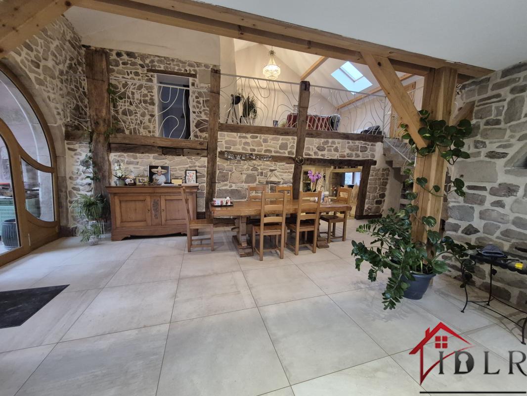 Au coeur d'un charmant village calme, à moins de 10 minutes des commerces, découvrez cette superbe ferme rénovée en 2018, alliant le charme de l'ancien et le confort moderne. Offrant environ 190 m2 habitables, cette propriété s'étend sur un vaste terrain de 5 804 m2, dont une partie constructible avec permis de construire et un mobil-home habitable de 40 m2. L'intérieur, entièrement rénové, met en valeur de magnifiques pierres apparentes et des matériaux de qualité. Au rez-de-chaussée, profitez d'un grand séjour lumineux ouvert sur une cuisine en chêne massif, d'une chambre, d'une buanderie et d'une pièce pouvant faire office de grand bureau, de salle de jeux ou d'une quatrième chambre. Pour les amateurs d'authenticité, une ancienne gazinière à bois a également été installée, apportant un charme supplémentaire à la cuisine et permettant de profiter de la chaleur douce du bois. À l'étage, un salon, deux chambres, une salle de bain complètent l'espace nuit. Les portes massives et le double vitrage assurent confort et isolation, tandis qu'une grande porte arrondie dans la salle à manger rappelle le style authentique des anciennes granges. Le chauffage est assuré par une pompe à chaleur aérothermique et une chaudière à gaz, complétés par 24 panneaux solaires installés en 2022 (autoconsommation + revente). L'assainissement est géré par une micro-station d'épuration. À l'extérieur, la propriété est idéale pour les amoureux des animaux : une partie du terrain est clôturée pour les chiens, un bâtiment peut accueillir deux chevaux, et un espace est prévu pour les poules. Le cadre paisible et la proximité des commodités font de cette maison un lieu de vie rare et recherché. Cette propriété conviendra parfaitement en tant que maison principale familiale ou en résidence secondaire, offrant un cadre de vie paisible et de nombreuses possibilités d'aménagement selon vos projets. Thierry TELOUX, Dr IMMO by IDLR, Tél : 07.70.11.89.81, Email : thierry.theloux@idlr.fr